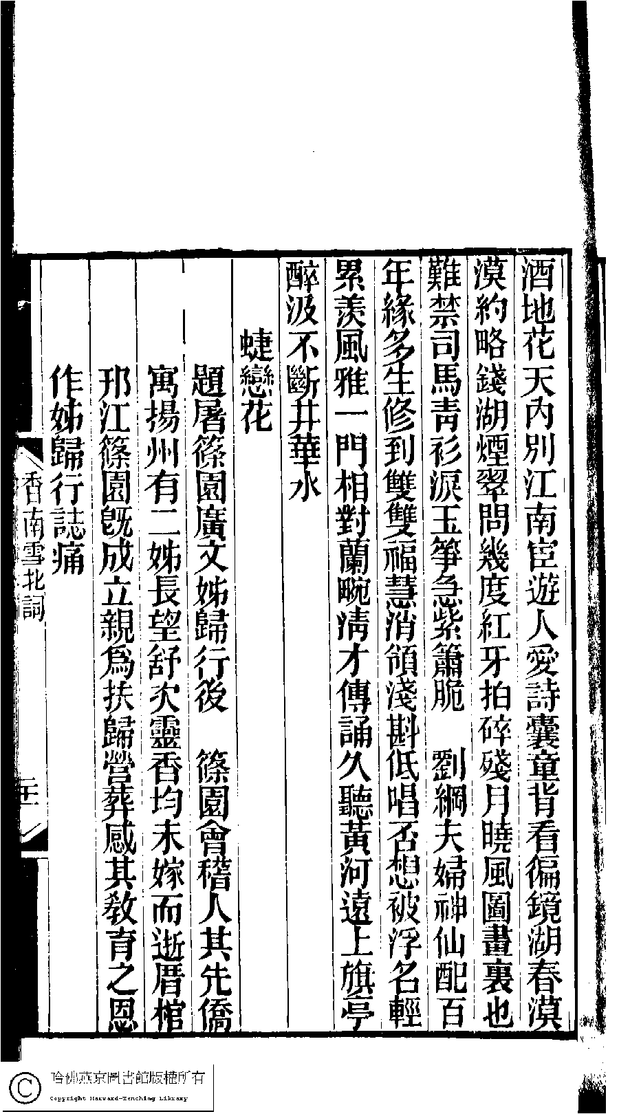 | (PRINT FRIENDLY VERSION) 林下雅音集﹕五種(淸冒俊輯) : 香南雪北詞: 一卷。淸光緖十年(1884)刻本。 ![]() Page : 21a | click for larger image | 林下雅音集﹕五種(淸冒俊輯) : 香南雪北詞: 一卷。淸光緖十年(1884)刻本。![]() Page : 20b | click for larger image | Back |