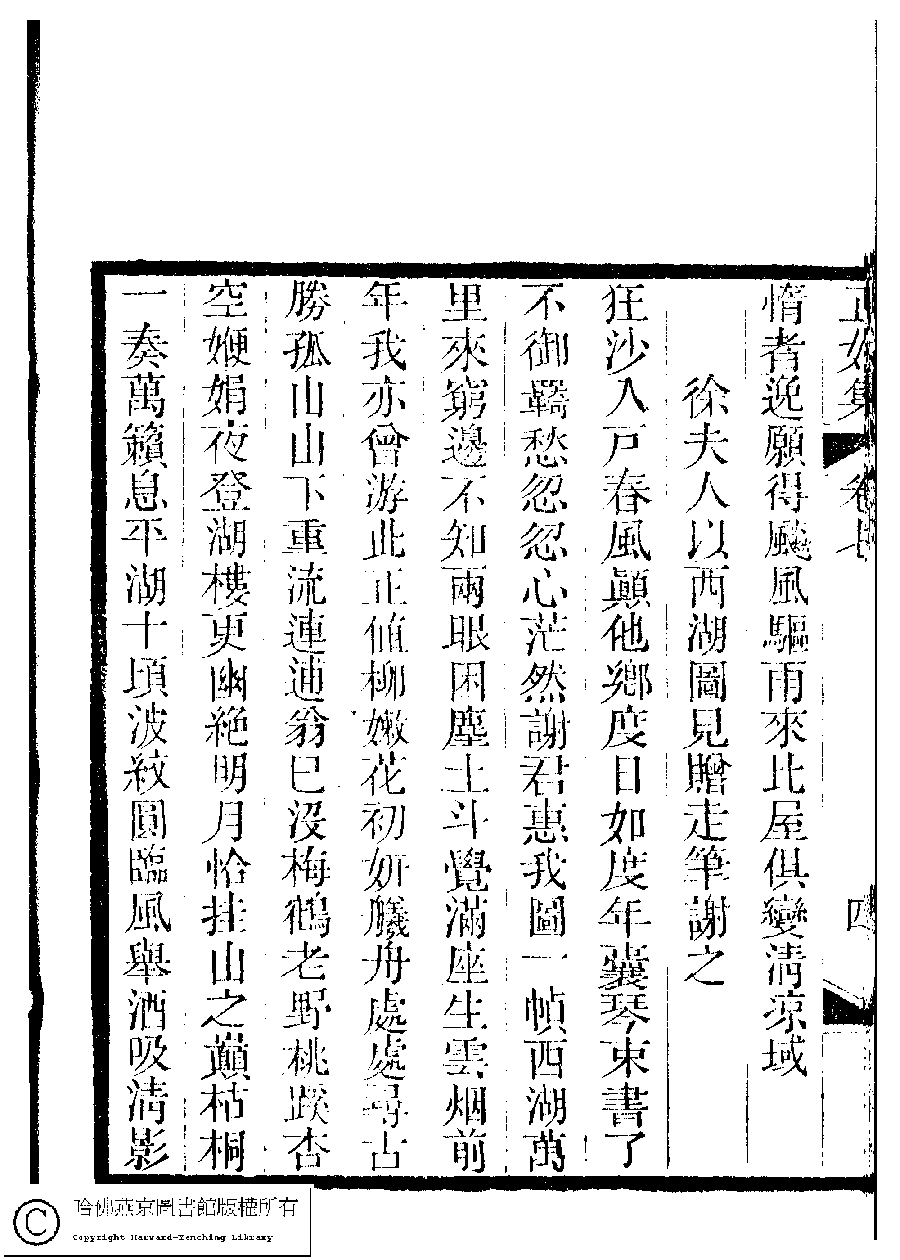 Poem [Xu fu ren yi Xi Hu tu jian zeng zou bi xie zhi]