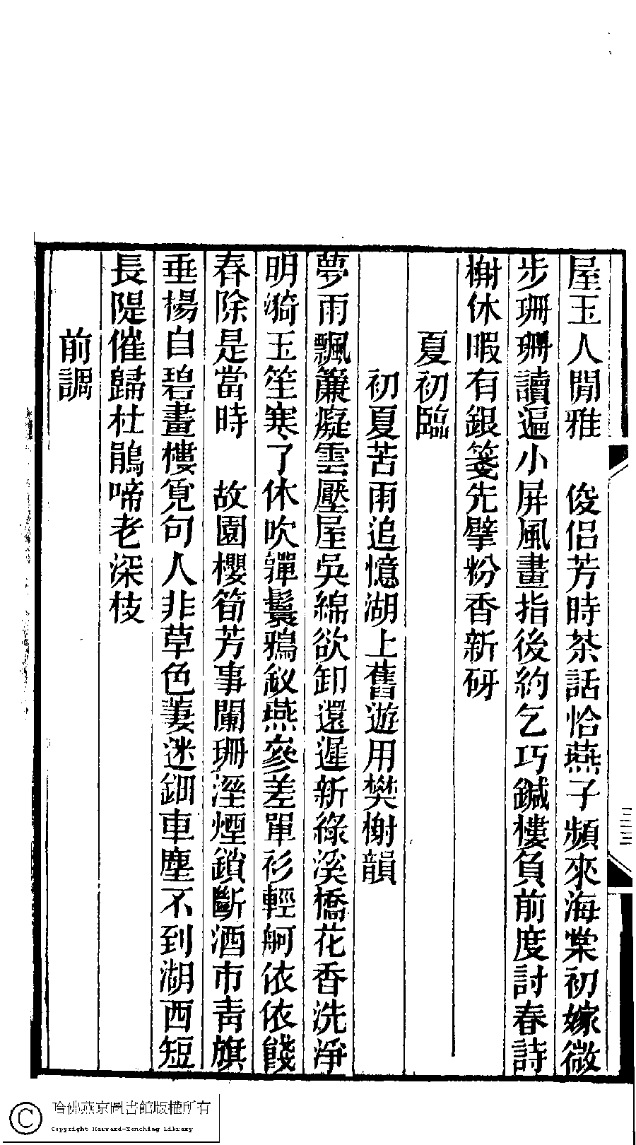 | (PRINT FRIENDLY VERSION) 林下雅音集﹕五種(淸冒俊輯) : 香南雪北詞: 一卷。淸光緖十年(1884)刻本。 ![]() Page : 34a | click for larger image | 林下雅音集﹕五種(淸冒俊輯) : 香南雪北詞: 一卷。淸光緖十年(1884)刻本。![]() Page : 33b | click for larger image | Back |