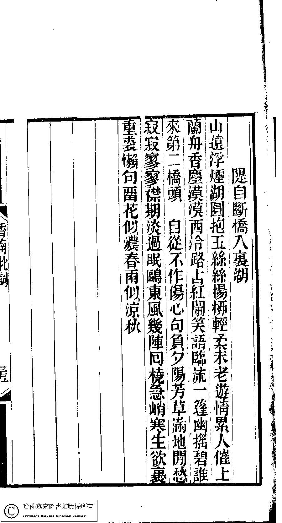 | (PRINT FRIENDLY VERSION) 林下雅音集﹕五種(淸冒俊輯) : 香南雪北詞: 一卷。淸光緖十年(1884)刻本。 ![]() Page : 35b | click for larger image | 林下雅音集﹕五種(淸冒俊輯) : 香南雪北詞: 一卷。淸光緖十年(1884)刻本。![]() Page : 35a | click for larger image | 林下雅音集﹕五種(淸冒俊輯) : 香南雪北詞: 一卷。淸光緖十年(1884)刻本。![]() Page : 34b | click for larger image | Back |