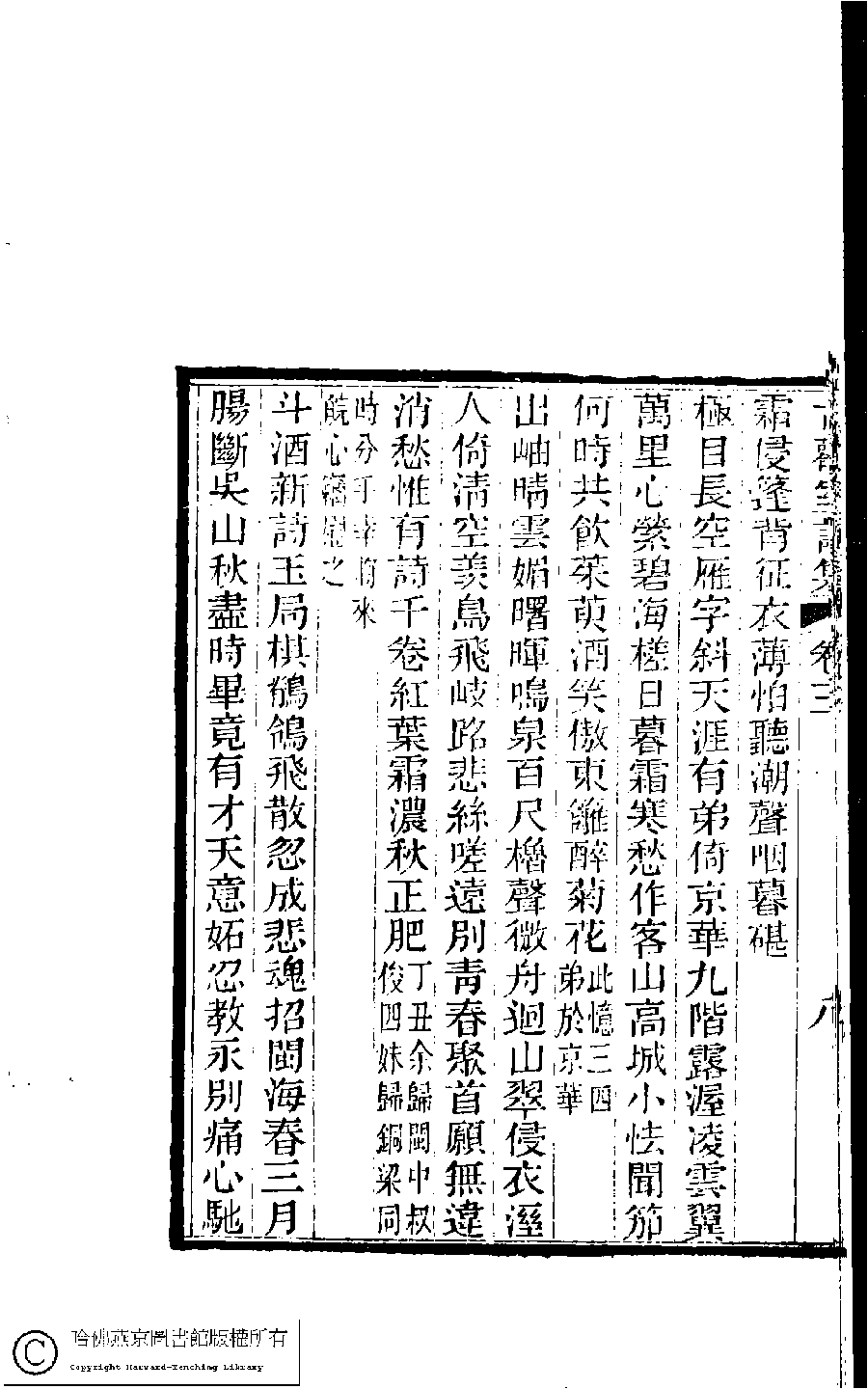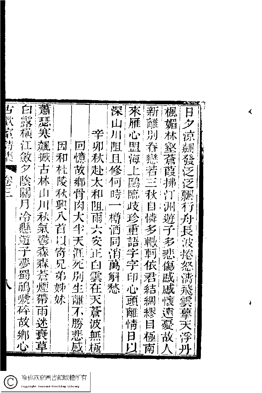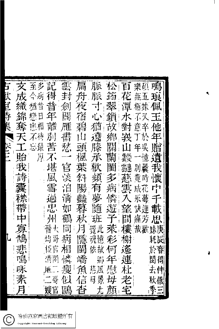 | (PRINT FRIENDLY VERSION) 古歡室詩集:三卷﹐詞集﹕一卷(清曾懿撰)。清光緖三十三年(1907)刻本。 ![]() Page : 3.9b | click for larger image | 古歡室詩集:三卷﹐詞集﹕一卷(清曾懿撰)。清光緖三十三年(1907)刻本。![]() Page : 3.9a | click for larger image | 古歡室詩集:三卷﹐詞集﹕一卷(清曾懿撰)。清光緖三十三年(1907)刻本。![]() Page : 3.8b | click for larger image | 古歡室詩集:三卷﹐詞集﹕一卷(清曾懿撰)。清光緖三十三年(1907)刻本。![]() Page : 3.8a | click for larger image | Back |