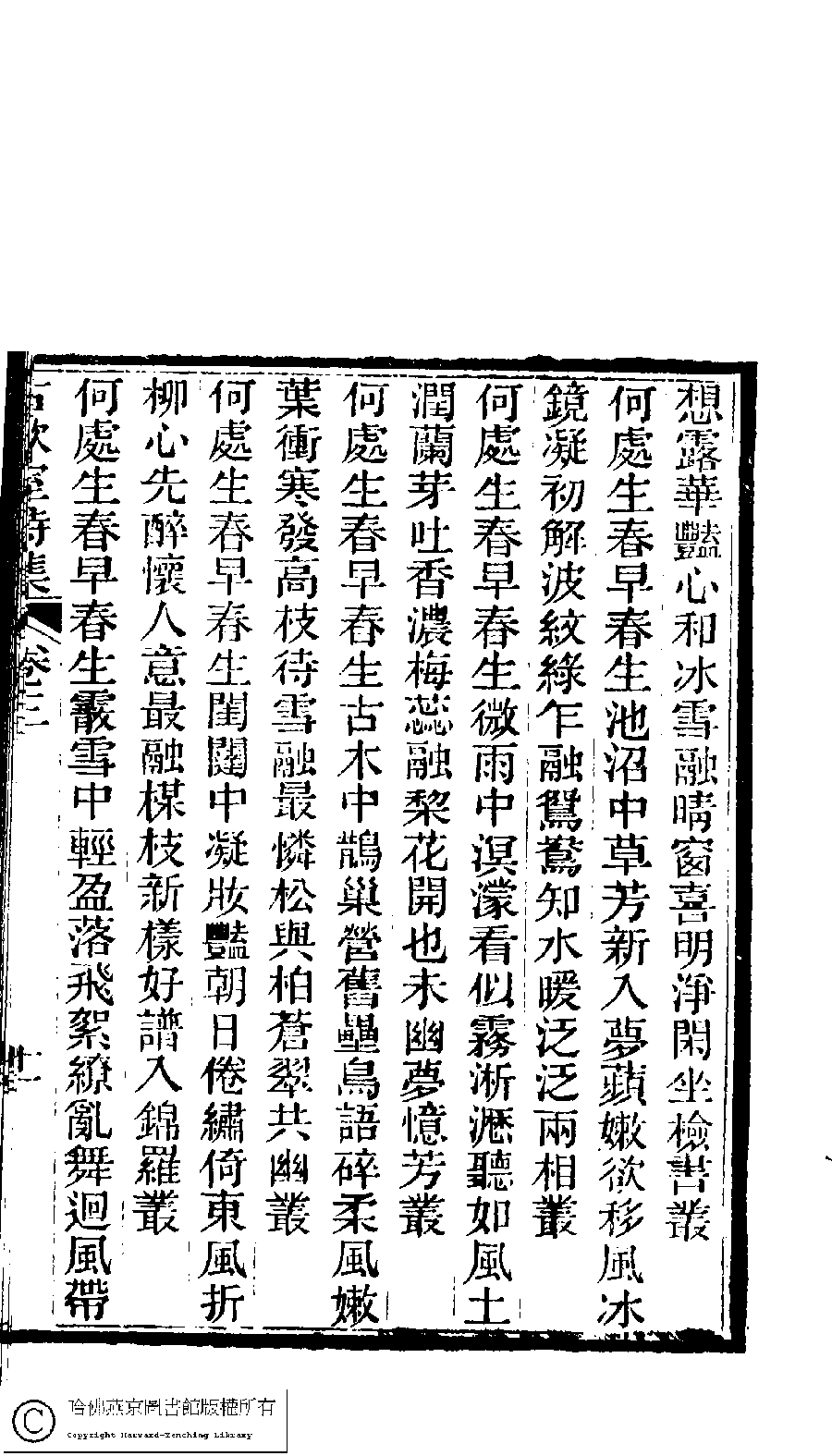 Poem [Feng feng yu yu yi guo hua zhao wan wu sui han chun yi shang wu yan yang jing xiang bei di chun han hua kai jiao chi zhi gu han chuang yu Youan xiao zhuo ou ni Yuan Weizhi Sheng chun shi shi shou]