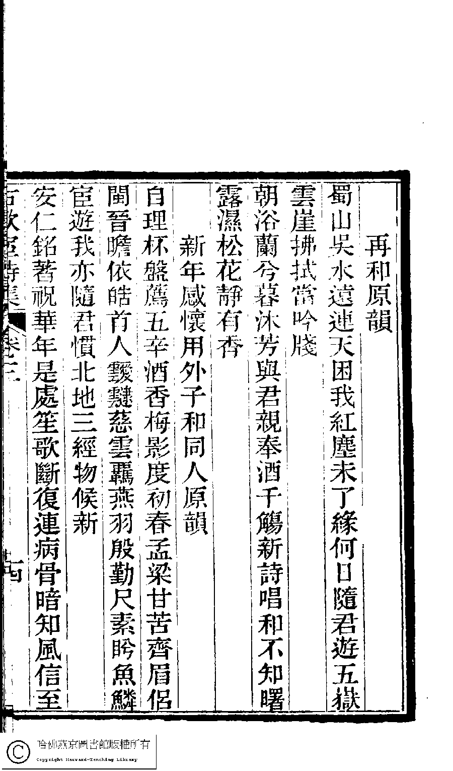Poem [Xin nian gan huai yong wai zi He tong ren yuan yun]