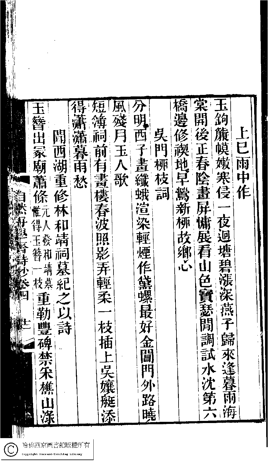 | (PRINT FRIENDLY VERSION) 林下雅音集﹕五種(淸冒俊輯) : 自然好學齋詩鈔: 十卷。淸光緖十年(1884)刻本。 ![]() Page : 4.12b | click for larger image | 林下雅音集﹕五種(淸冒俊輯) : 自然好學齋詩鈔: 十卷。淸光緖十年(1884)刻本。![]() Page : 4.12a | click for larger image | Back |