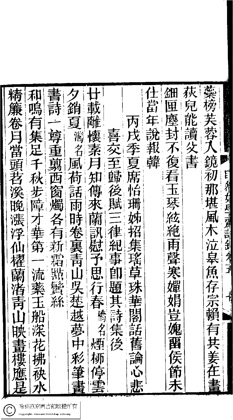| (PRINT FRIENDLY VERSION) 林下雅音集﹕五種(淸冒俊輯) : 自然好學齋詩鈔: 十卷。淸光緖十年(1884)刻本。 ![]() Page : 5.8a | click for larger image | 林下雅音集﹕五種(淸冒俊輯) : 自然好學齋詩鈔: 十卷。淸光緖十年(1884)刻本。![]() Page : 5.7b | click for larger image | Back |