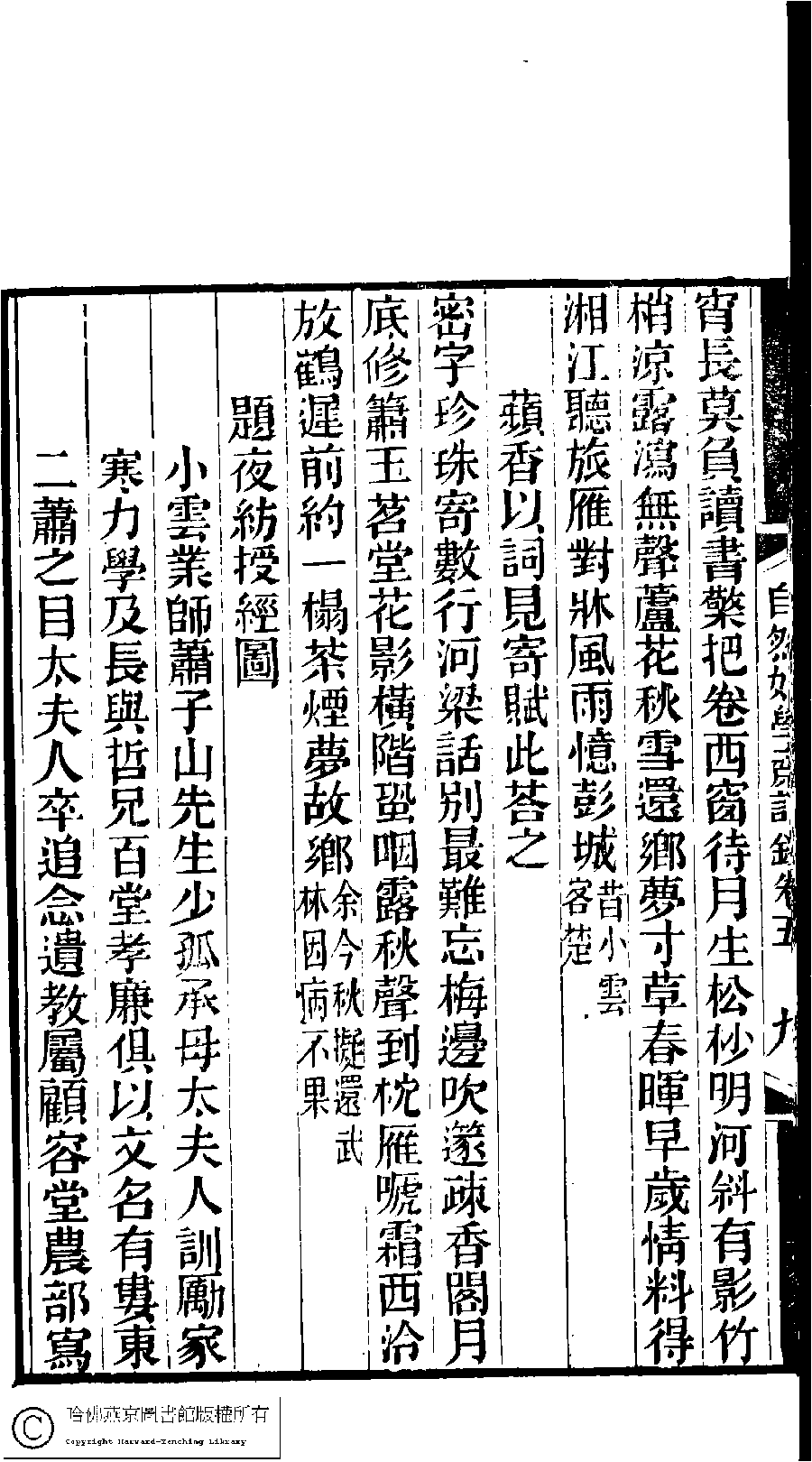| (PRINT FRIENDLY VERSION) 林下雅音集﹕五種(淸冒俊輯) : 自然好學齋詩鈔: 十卷。淸光緖十年(1884)刻本。 ![]() Page : 5.9b | click for larger image | 林下雅音集﹕五種(淸冒俊輯) : 自然好學齋詩鈔: 十卷。淸光緖十年(1884)刻本。![]() Page : 5.9a | click for larger image | Back |