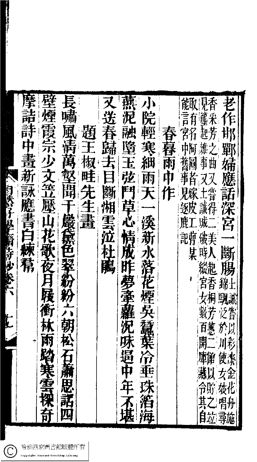 | (PRINT FRIENDLY VERSION) 林下雅音集﹕五種(淸冒俊輯) : 自然好學齋詩鈔: 十卷。淸光緖十年(1884)刻本。 ![]() Page : 6.19a | click for larger image | 林下雅音集﹕五種(淸冒俊輯) : 自然好學齋詩鈔: 十卷。淸光緖十年(1884)刻本。![]() Page : 6.18b | click for larger image | Back |