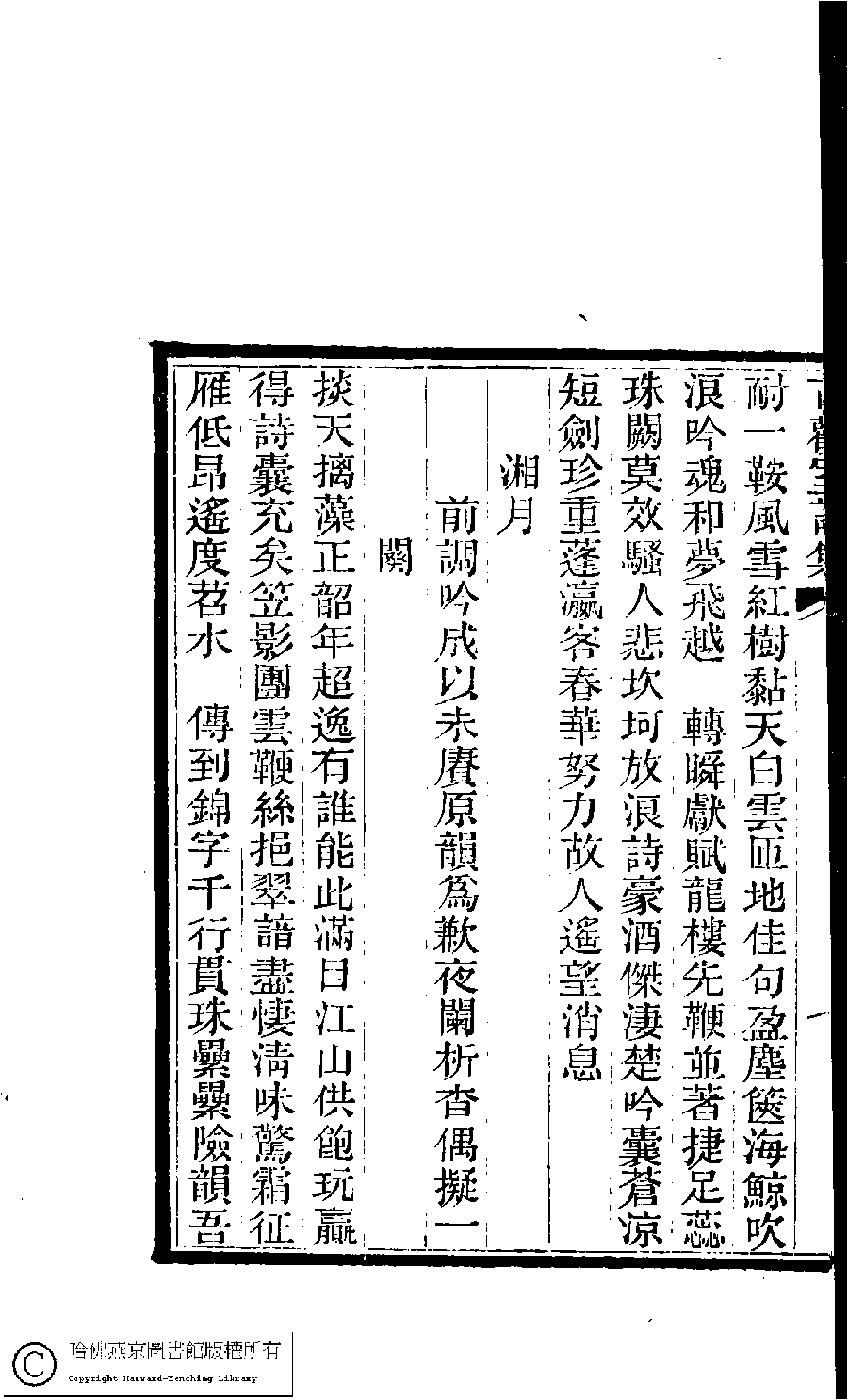 Poem [Xiang yue : Shiling biao di qiu wei bao ba zhi shen lai Tong cai ren wei yu yi yu bu ping huan ju shu ri chang ran you bie bie hou ji lai shi ci zhu zuo kang kai bei ge you si ru duo sui he qi yun liao dang yang guan san die]