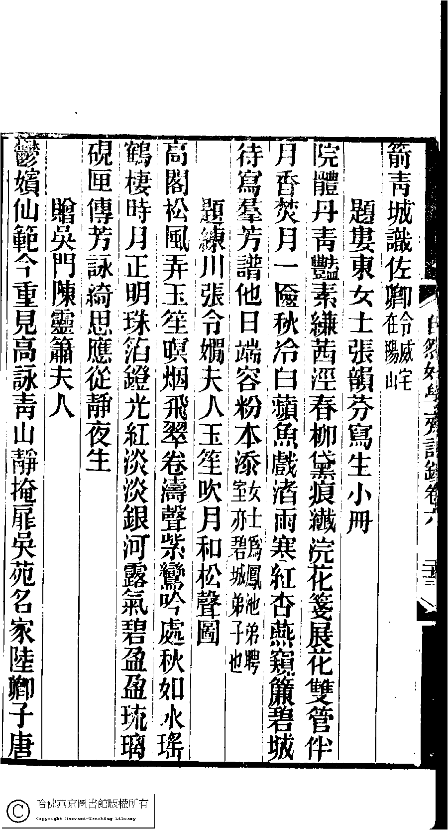 Poem [Ti Lianchuan Zhang Lingxian fu ren Yu sheng chui yue he song sheng tu]