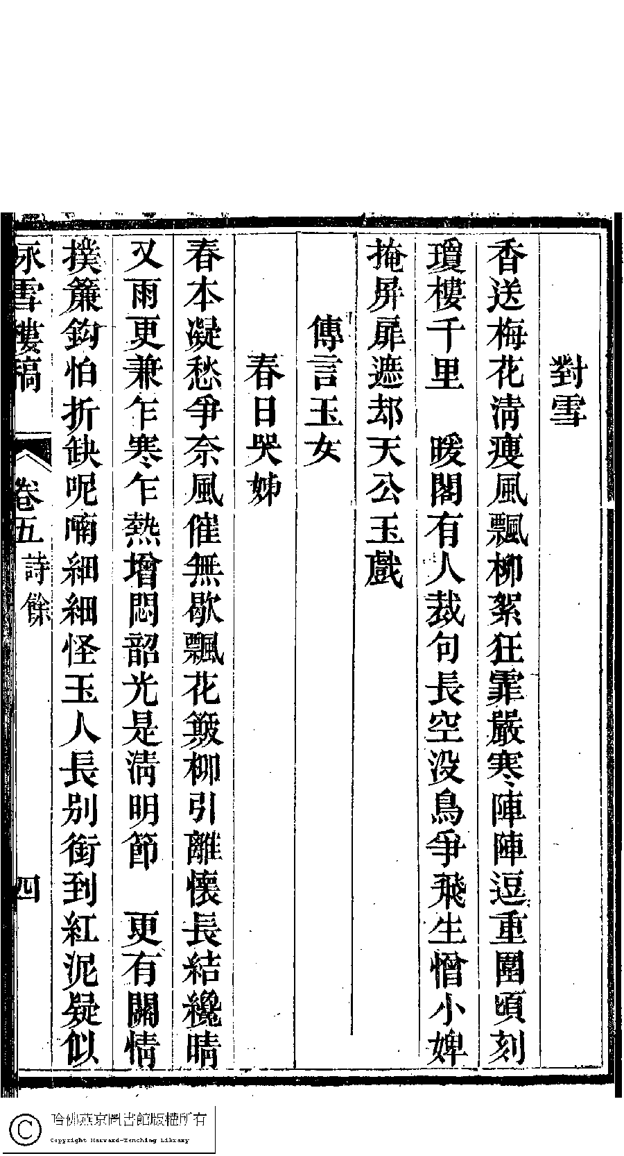 | Appears in: Yong xue lou gao: 5 juan, juan shou 1 juan, fu 1 juan ( by Gan lirou, Qing dynasty) |