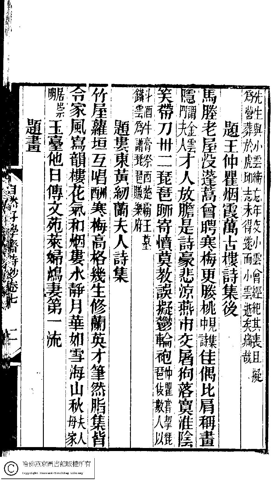 | (PRINT FRIENDLY VERSION) 林下雅音集﹕五種(淸冒俊輯) : 自然好學齋詩鈔: 十卷。淸光緖十年(1884)刻本。 ![]() Page : 7.2a | click for larger image | Back |