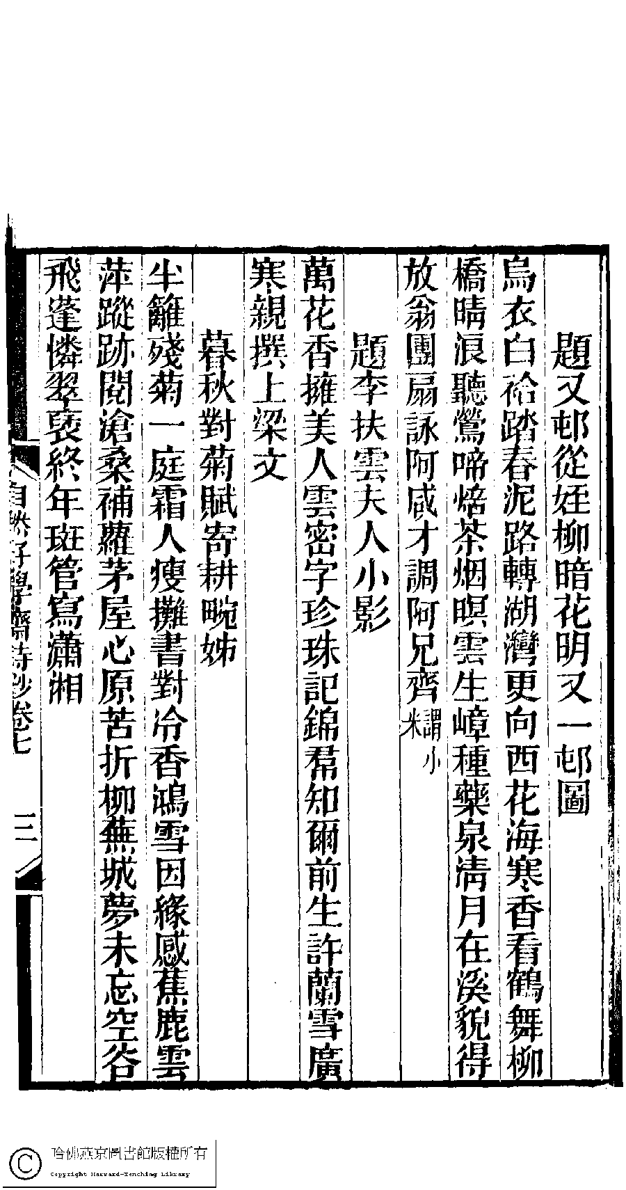 | (PRINT FRIENDLY VERSION) 林下雅音集﹕五種(淸冒俊輯) : 自然好學齋詩鈔: 十卷。淸光緖十年(1884)刻本。 ![]() Page : 7.3a | click for larger image | Back |
