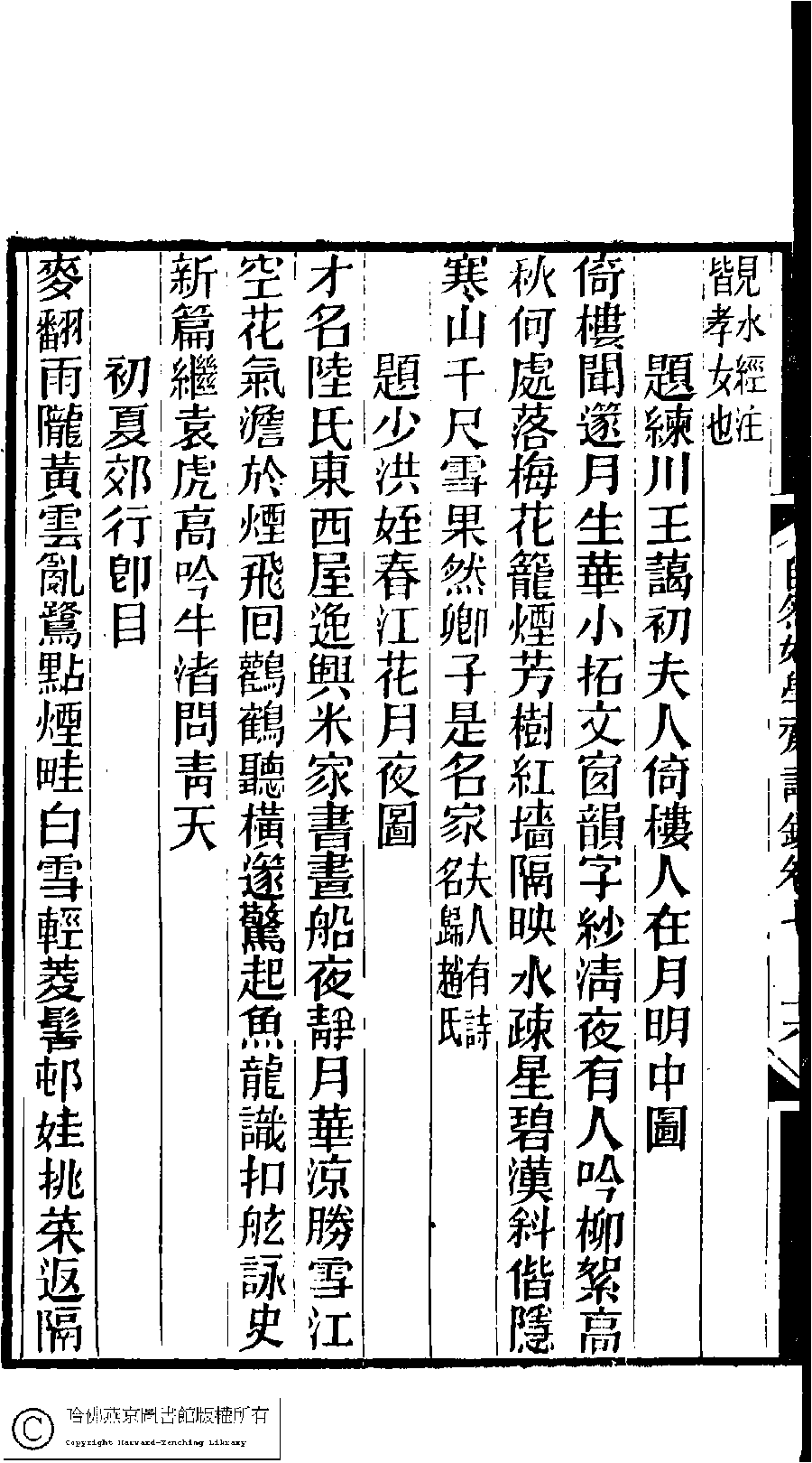 Poem [Ti Lianchuan Wang Aichu fu ren Yi lou ren zai yue ming zhong tu]