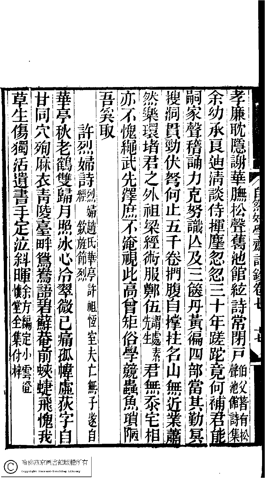 | (PRINT FRIENDLY VERSION) 林下雅音集﹕五種(淸冒俊輯) : 自然好學齋詩鈔: 十卷。淸光緖十年(1884)刻本。 ![]() Page : 7.17b | click for larger image | Back |