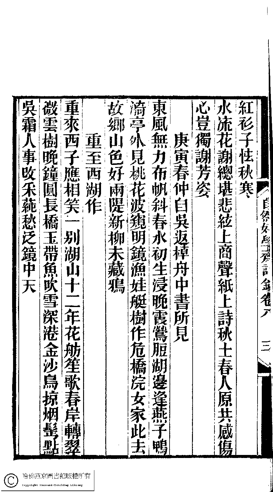 | (PRINT FRIENDLY VERSION) 林下雅音集﹕五種(淸冒俊輯) : 自然好學齋詩鈔: 十卷。淸光緖十年(1884)刻本。 ![]() Page : 8.3b | click for larger image | 林下雅音集﹕五種(淸冒俊輯) : 自然好學齋詩鈔: 十卷。淸光緖十年(1884)刻本。![]() Page : 8.3a | click for larger image | Back |