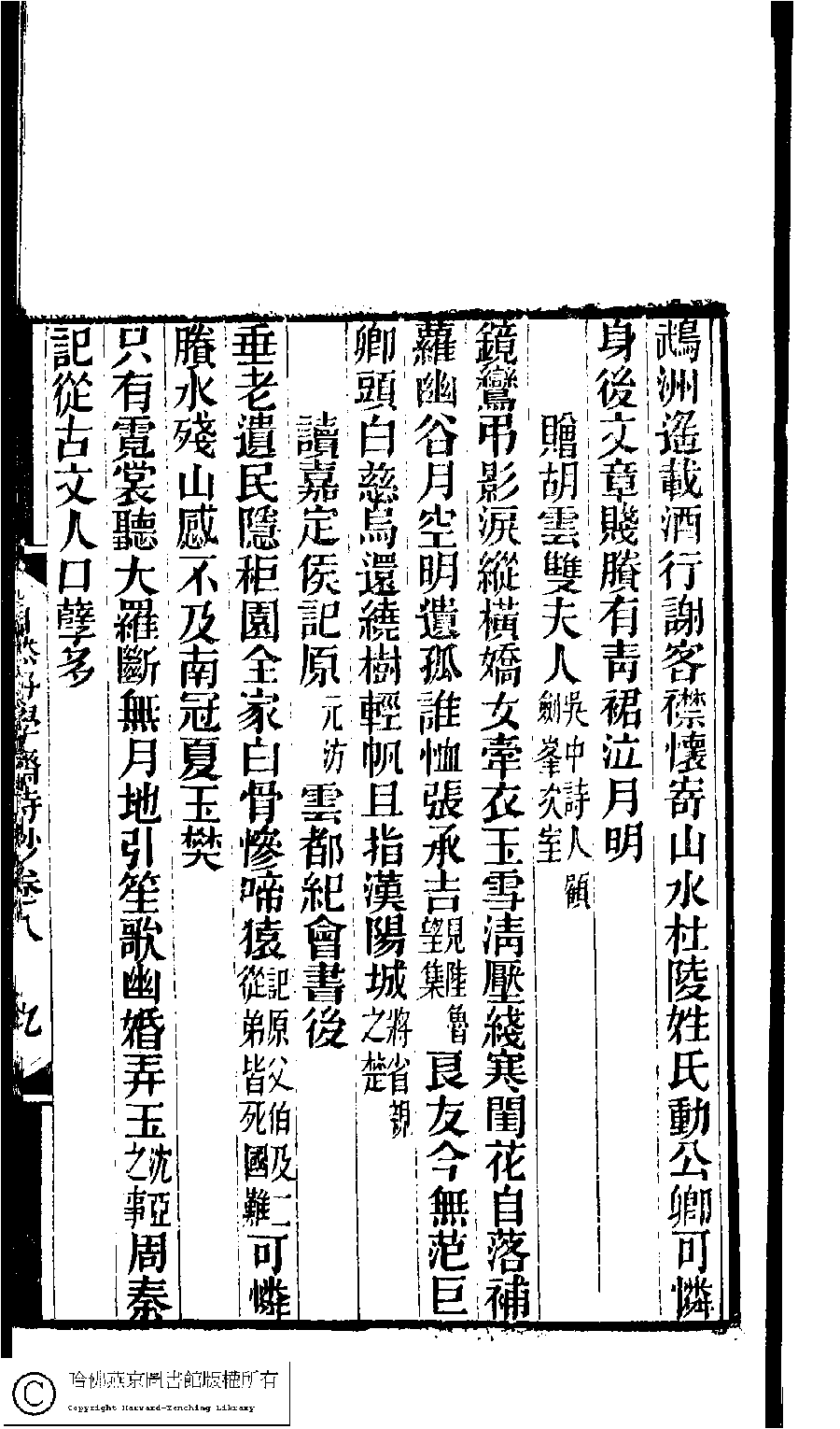 | (PRINT FRIENDLY VERSION) 林下雅音集﹕五種(淸冒俊輯) : 自然好學齋詩鈔: 十卷。淸光緖十年(1884)刻本。 ![]() Page : 8.9a | click for larger image | Back |