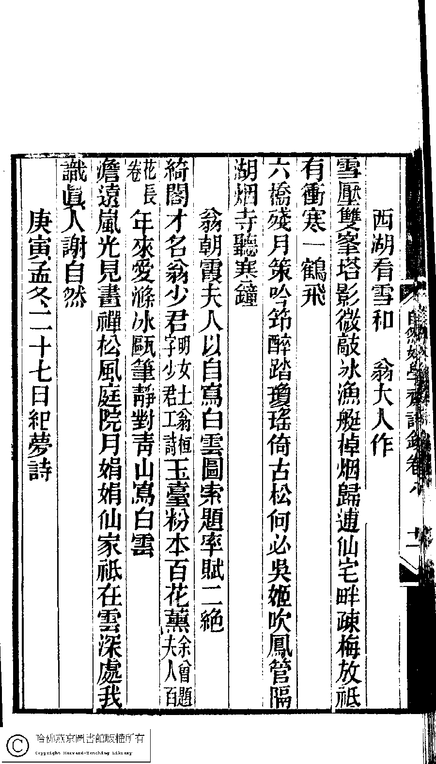 Poem [Weng Zhaoxia fu ren yi zi xie Bai yun tu suo ti shuai fu er jue]