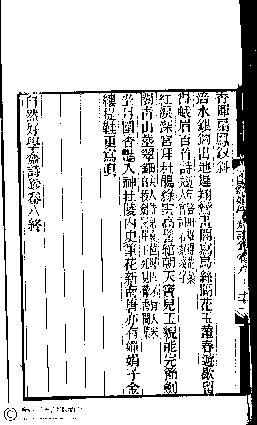 | (PRINT FRIENDLY VERSION) 林下雅音集﹕五種(淸冒俊輯) : 自然好學齋詩鈔: 十卷。淸光緖十年(1884)刻本。 ![]() Page : 8.22b | click for larger image | 林下雅音集﹕五種(淸冒俊輯) : 自然好學齋詩鈔: 十卷。淸光緖十年(1884)刻本。![]() Page : 8.22a | click for larger image | Back |