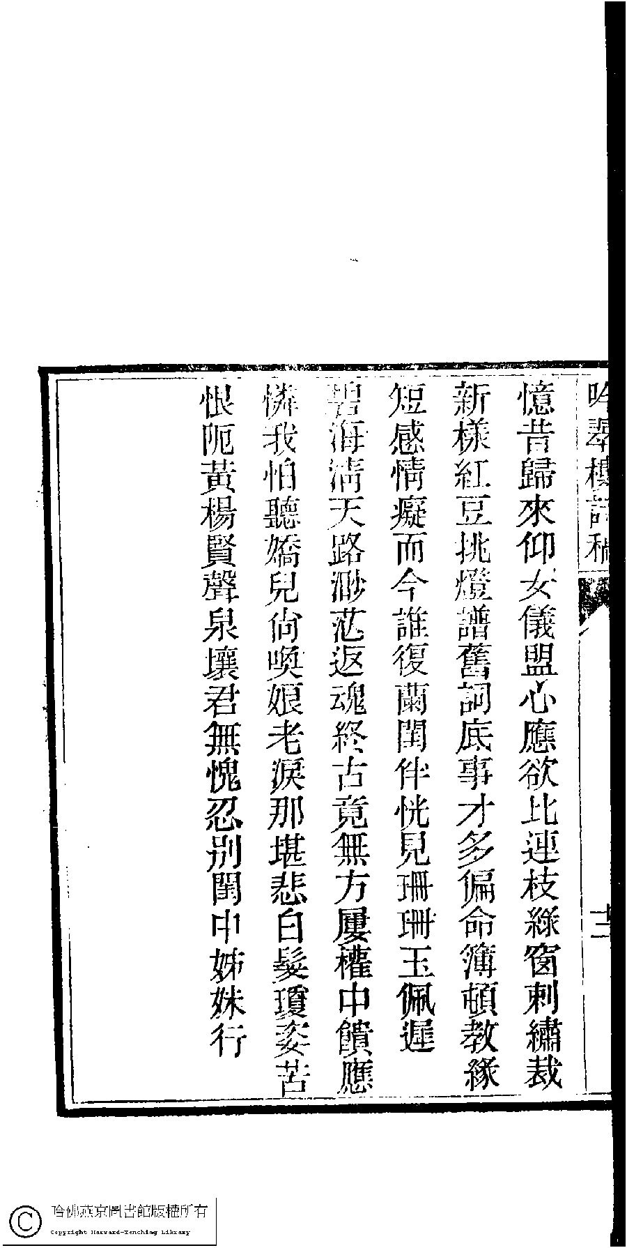 | (PRINT FRIENDLY VERSION) 吟翠樓詩稿﹕一卷﹐附刻﹕一卷(清孫佩蘭撰)。光緖十四年(1888)刻本。 ![]() Page : 12b | click for larger image | 吟翠樓詩稿﹕一卷﹐附刻﹕一卷(清孫佩蘭撰)。光緖十四年(1888)刻本。![]() Page : 12a | click for larger image | Back |
