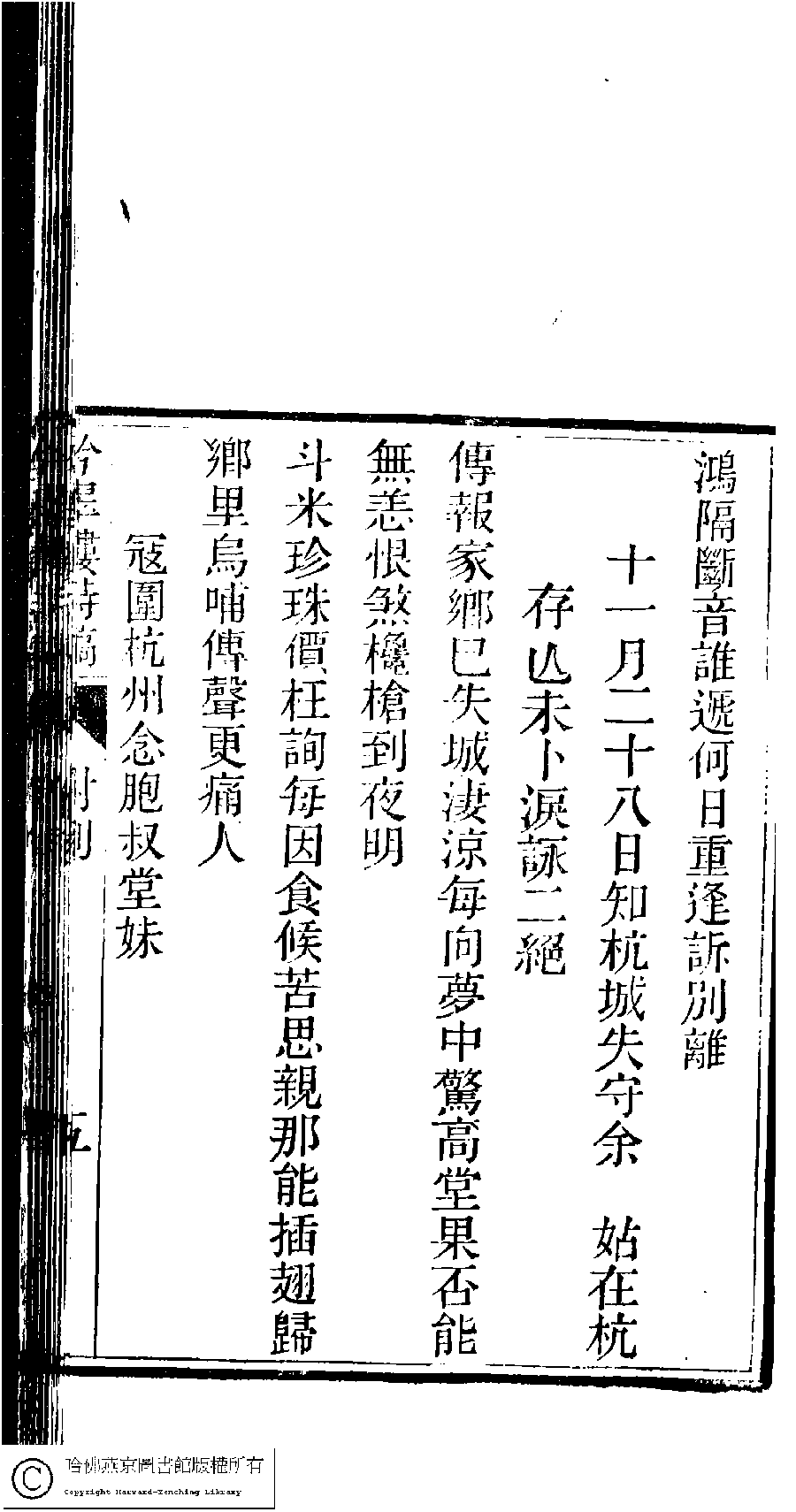 Poem [Shi yi yue er shi ba ri zhi Hang cheng shi shou yu gu zai Hang cun wang wei bu lei yong er jue]