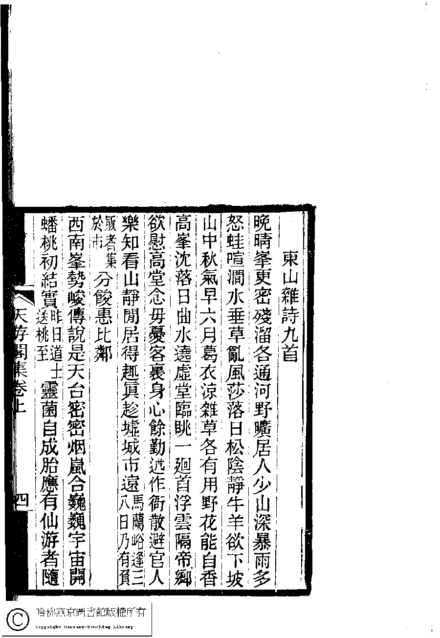 | (PRINT FRIENDLY VERSION) 天游閣詩集﹕二卷(清顧太清撰)。清宣統元年(1909)刻本。 ![]() Page : 1.5a | click for larger image | 天游閣詩集﹕二卷(清顧太清撰)。清宣統元年(1909)刻本。![]() Page : 1.4b | click for larger image | 天游閣詩集﹕二卷(清顧太清撰)。清宣統元年(1909)刻本。![]() Page : 1.4a | click for larger image | Back |