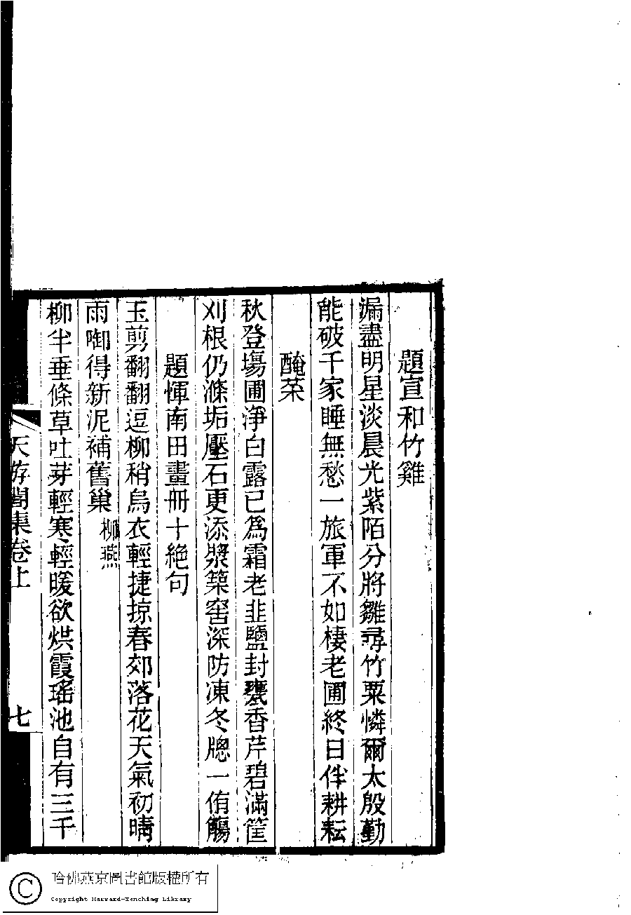 | (PRINT FRIENDLY VERSION) 天游閣詩集﹕二卷(清顧太清撰)。清宣統元年(1909)刻本。 ![]() Page : 1.7a | click for larger image | Back |