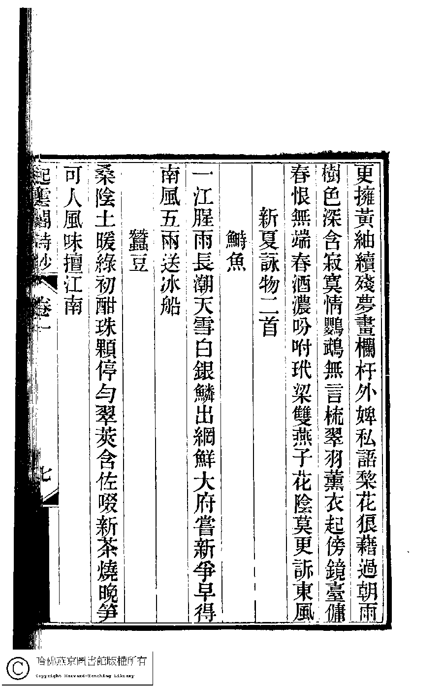 | (PRINT FRIENDLY VERSION) 京江鮑氏三女史詩鈔合刻(清戴燮元輯) : 起雲閣詩鈔。清光緖八年(1882) 刻本。 ![]() Page : 1.7a | click for larger image | Back |