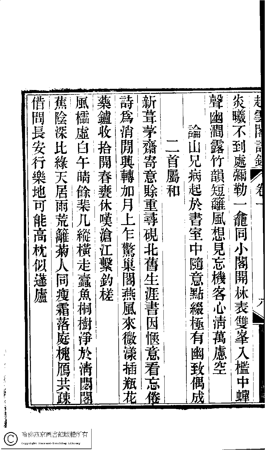 | (PRINT FRIENDLY VERSION) 京江鮑氏三女史詩鈔合刻(清戴燮元輯) : 起雲閣詩鈔。清光緖八年(1882) 刻本。 ![]() Page : 1.8b | click for larger image | Back |