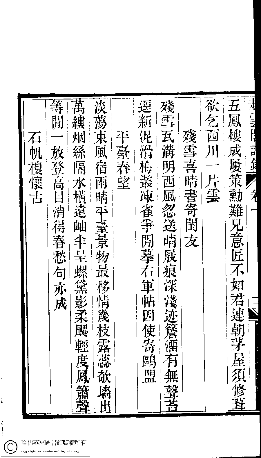 | (PRINT FRIENDLY VERSION) 京江鮑氏三女史詩鈔合刻(清戴燮元輯) : 起雲閣詩鈔。清光緖八年(1882) 刻本。 ![]() Page : 1.12b | click for larger image | Back |