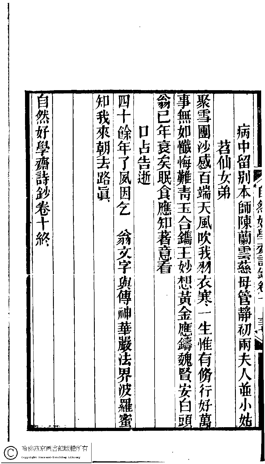 | (PRINT FRIENDLY VERSION) 林下雅音集﹕五種(淸冒俊輯) : 自然好學齋詩鈔: 十卷。淸光緖十年(1884)刻本。 ![]() Page : 10.37b | click for larger image | Back |