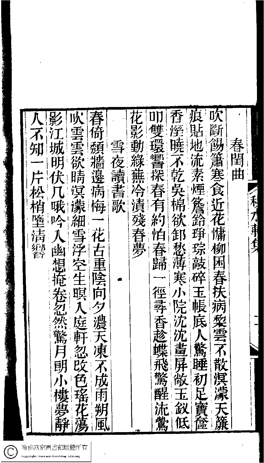 | Appears in: Lin xia ya yin ji: 5 zhong (edited by Mao Jun, Qing dynasty): Qiu shui xuan shi ci ji: 1 juan |