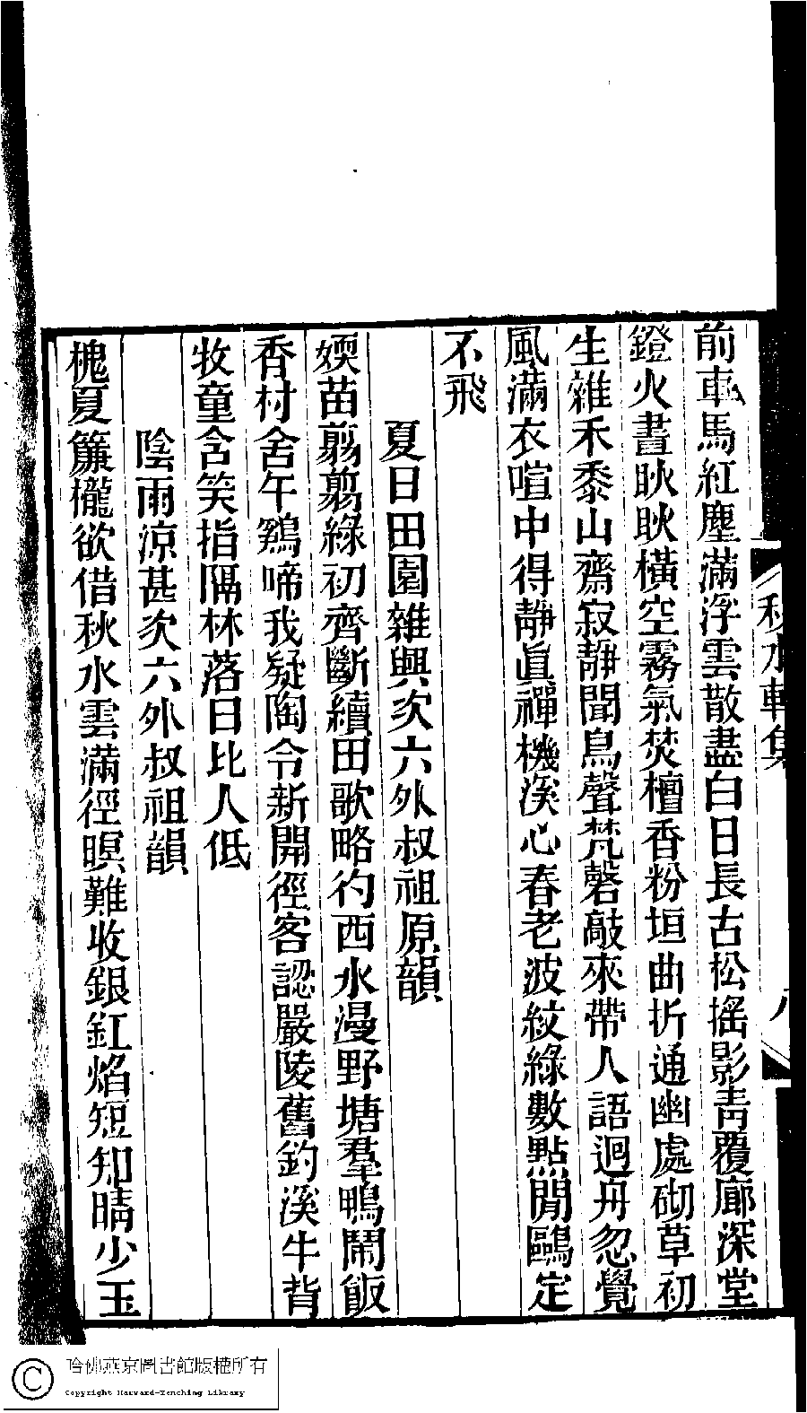 | (PRINT FRIENDLY VERSION) 林下雅音集﹕五種(淸冒俊輯) : 秋水軒詩詞集: 一卷。淸光緖十年(1884)刻本。 ![]() Page : 8b | click for larger image | 林下雅音集﹕五種(淸冒俊輯) : 秋水軒詩詞集: 一卷。淸光緖十年(1884)刻本。![]() Page : 8a | click for larger image | Back |