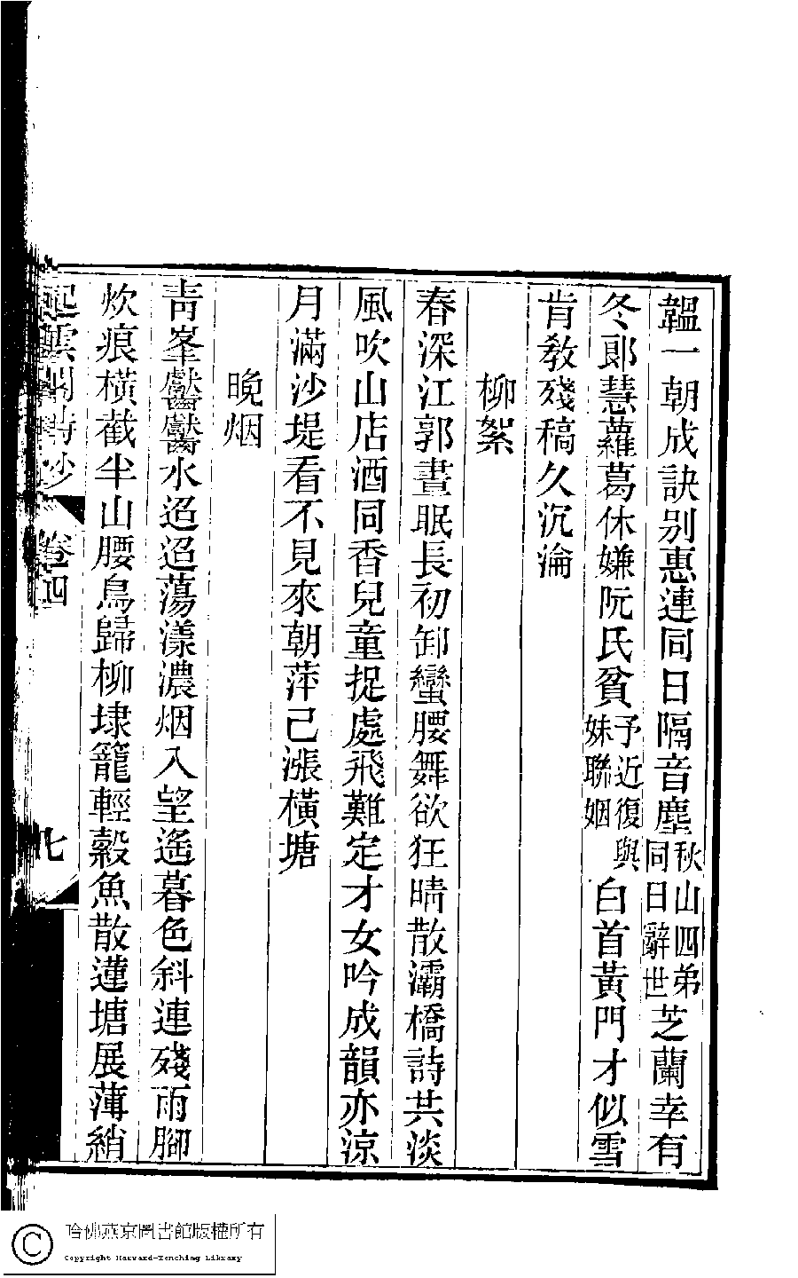 | (PRINT FRIENDLY VERSION) 京江鮑氏三女史詩鈔合刻(清戴燮元輯) : 起雲閣詩鈔。清光緖八年(1882) 刻本。 ![]() Page : 4.7a | click for larger image | 京江鮑氏三女史詩鈔合刻(清戴燮元輯) : 起雲閣詩鈔。清光緖八年(1882) 刻本。![]() Page : 4.6b | click for larger image | Back |