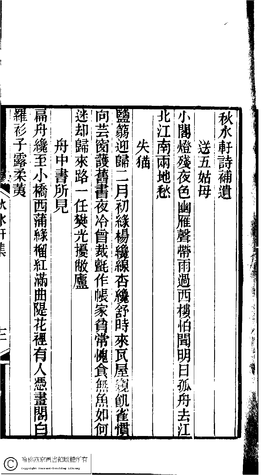 | Appears in: Lin xia ya yin ji: 5 zhong (edited by Mao Jun, Qing dynasty): Qiu shui xuan shi ci ji: 1 juan |