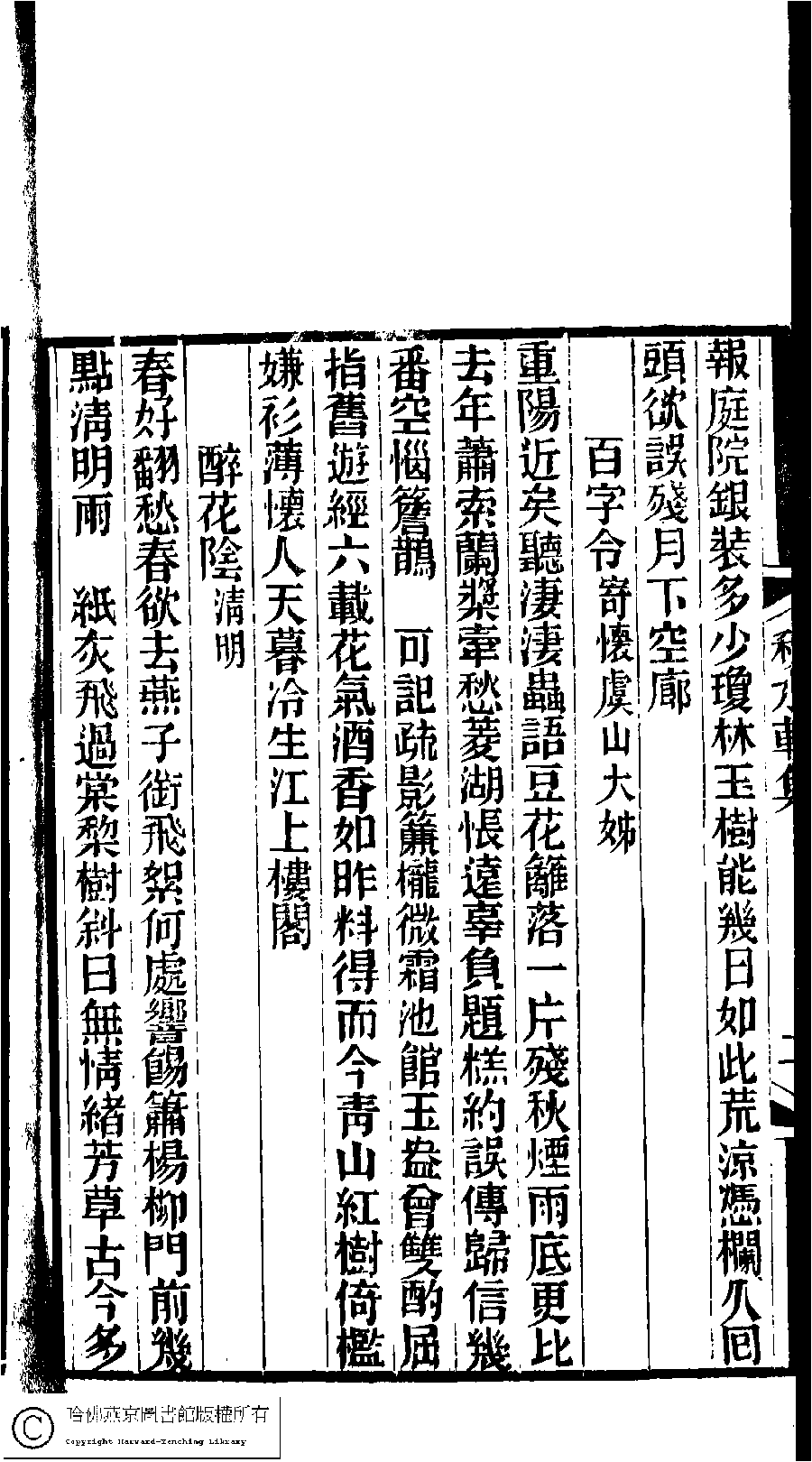 | Appears in: Lin xia ya yin ji: 5 zhong (edited by Mao Jun, Qing dynasty): Qiu shui xuan shi ci ji: 1 juan |