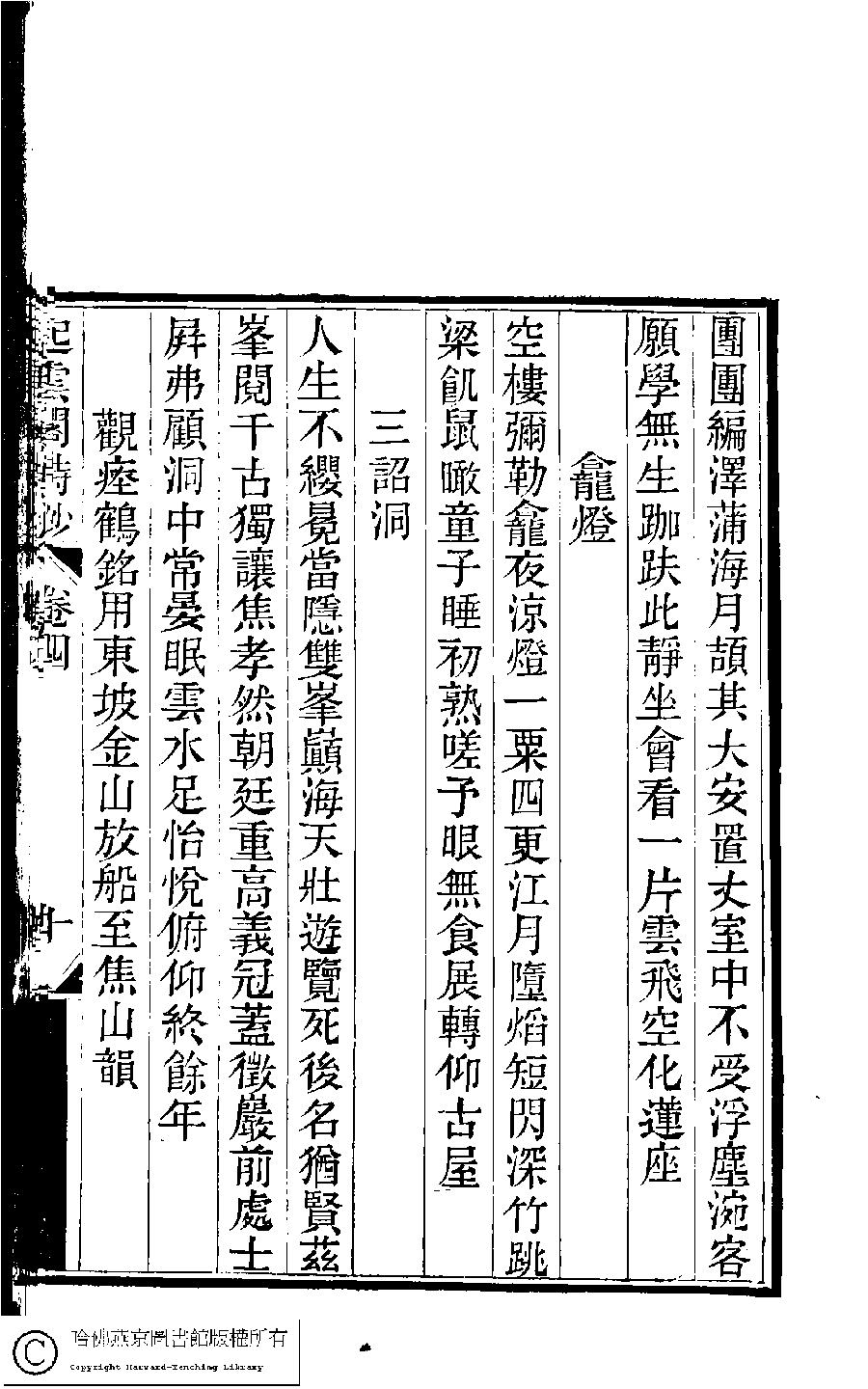 | (PRINT FRIENDLY VERSION) 京江鮑氏三女史詩鈔合刻(清戴燮元輯) : 起雲閣詩鈔。清光緖八年(1882) 刻本。 ![]() Page : 4.10a | click for larger image | Back |
