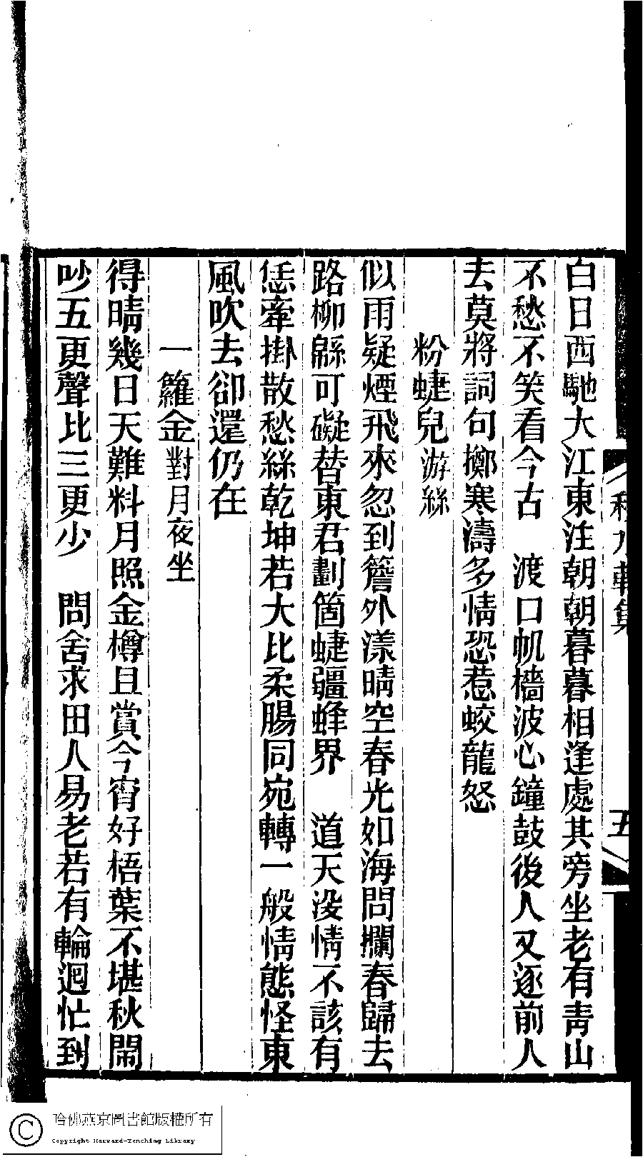 | (PRINT FRIENDLY VERSION) 林下雅音集﹕五種(淸冒俊輯) : 秋水軒詩詞集: 一卷。淸光緖十年(1884)刻本。 ![]() Page : 詞.6a | click for larger image | 林下雅音集﹕五種(淸冒俊輯) : 秋水軒詩詞集: 一卷。淸光緖十年(1884)刻本。![]() Page : 詞.5b | click for larger image | Back |