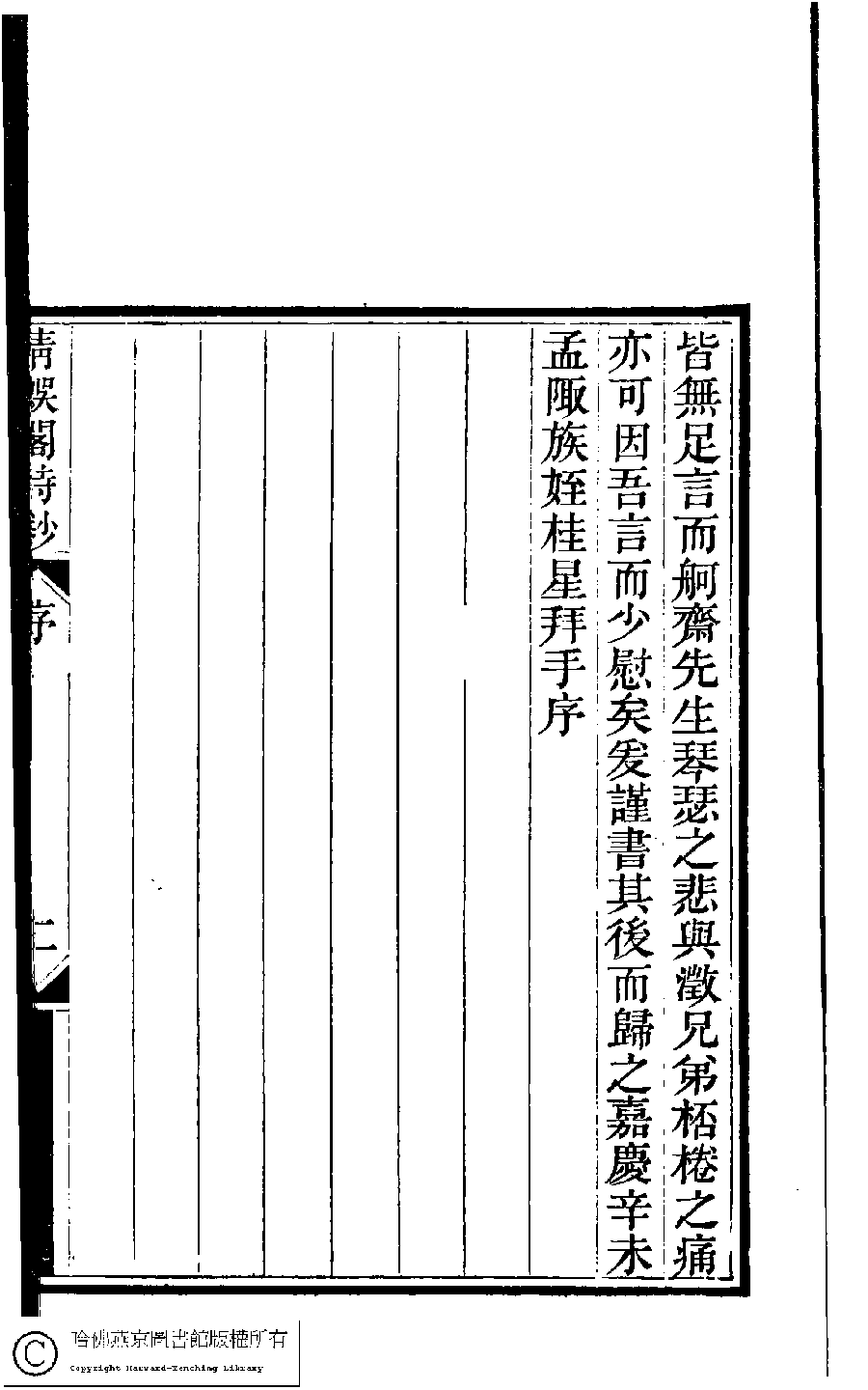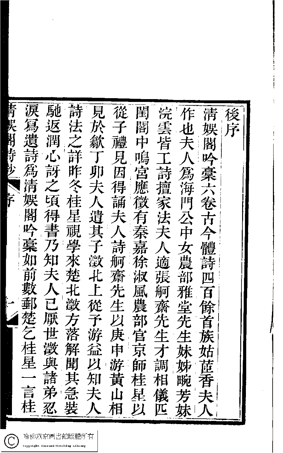 | (PRINT FRIENDLY VERSION) 京江鮑氏三女史詩鈔合刻(清戴燮元輯) : 清娛閣詩鈔。清光緖八年(1882) 刻本。 ![]() Page : 序.2b | click for larger image | 京江鮑氏三女史詩鈔合刻(清戴燮元輯) : 清娛閣詩鈔。清光緖八年(1882) 刻本。![]() Page : 序.2a | click for larger image | 京江鮑氏三女史詩鈔合刻(清戴燮元輯) : 清娛閣詩鈔。清光緖八年(1882) 刻本。![]() Page : 序.1b | click for larger image | 京江鮑氏三女史詩鈔合刻(清戴燮元輯) : 清娛閣詩鈔。清光緖八年(1882) 刻本。![]() Page : 序.1a | click for larger image | Back |