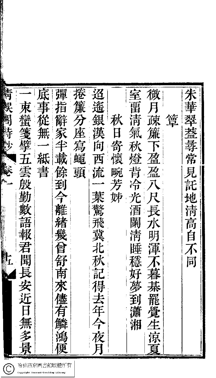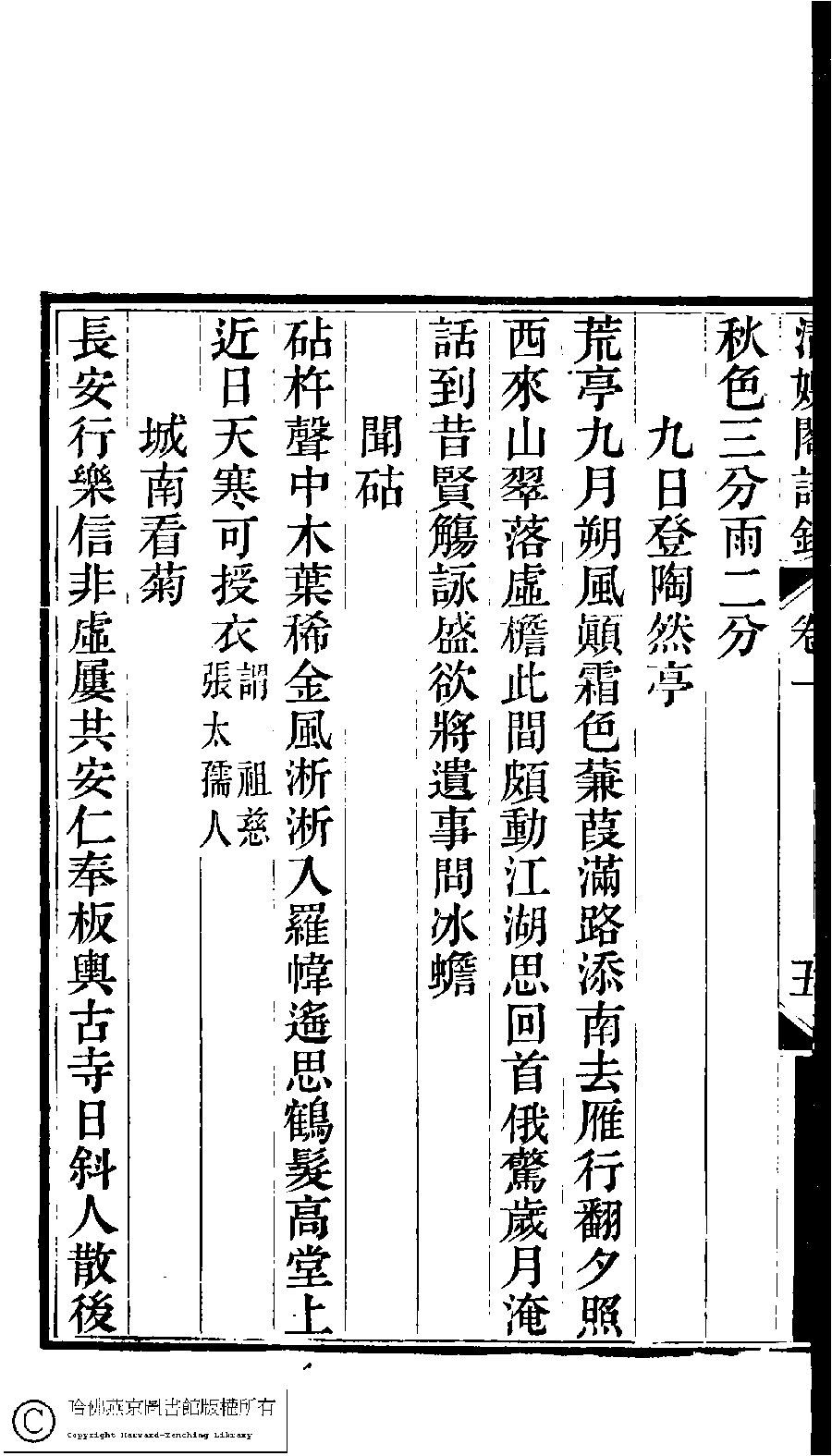 | (PRINT FRIENDLY VERSION) 京江鮑氏三女史詩鈔合刻(清戴燮元輯) : 清娛閣詩鈔。清光緖八年(1882) 刻本。 ![]() Page : 1.5b | click for larger image | 京江鮑氏三女史詩鈔合刻(清戴燮元輯) : 清娛閣詩鈔。清光緖八年(1882) 刻本。![]() Page : 1.5a | click for larger image | Back |