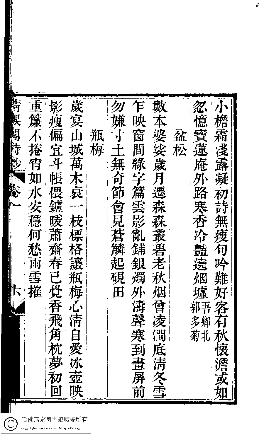 | Appears in: Jingjiang Bao shi san nü shi shi chao he ke (edited by Dai Xieyuan, Qing dynasty): Qing yu ge shi chao |