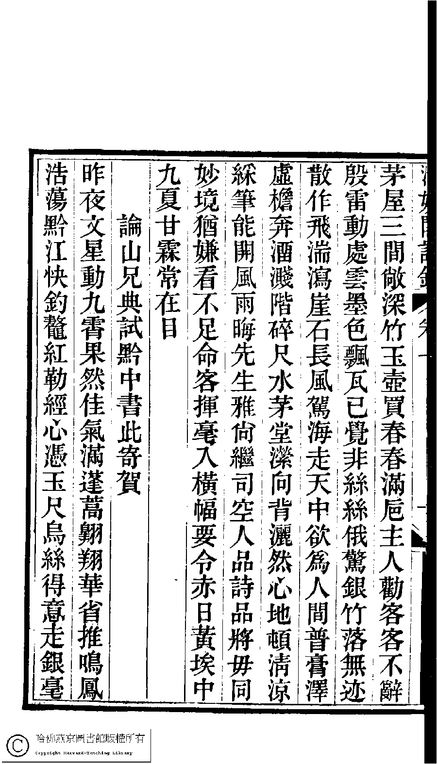 | (PRINT FRIENDLY VERSION) 京江鮑氏三女史詩鈔合刻(清戴燮元輯) : 清娛閣詩鈔。清光緖八年(1882) 刻本。 ![]() Page : 1.11a | click for larger image | 京江鮑氏三女史詩鈔合刻(清戴燮元輯) : 清娛閣詩鈔。清光緖八年(1882) 刻本。![]() Page : 1.10b | click for larger image | Back |