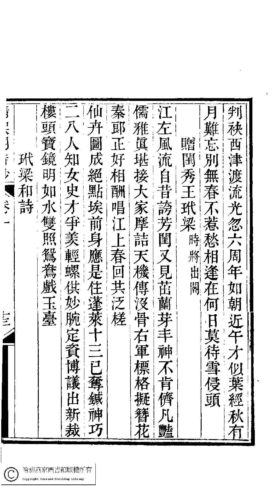 | Appears in: Jingjiang Bao shi san nü shi shi chao he ke (edited by Dai Xieyuan, Qing dynasty): Qing yu ge shi chao |