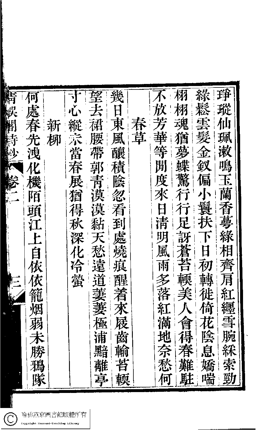 | Appears in: Jingjiang Bao shi san nü shi shi chao he ke (edited by Dai Xieyuan, Qing dynasty): Qing yu ge shi chao |