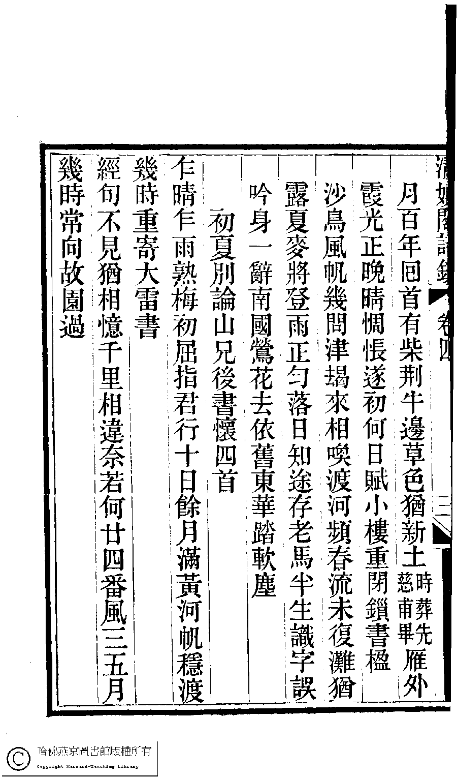 | (PRINT FRIENDLY VERSION) 京江鮑氏三女史詩鈔合刻(清戴燮元輯) : 清娛閣詩鈔。清光緖八年(1882) 刻本。 ![]() Page : 4.4a | click for larger image | 京江鮑氏三女史詩鈔合刻(清戴燮元輯) : 清娛閣詩鈔。清光緖八年(1882) 刻本。![]() Page : 4.3b | click for larger image | Back |