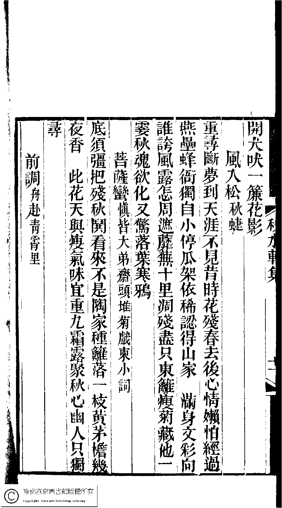 | Appears in: Lin xia ya yin ji: 5 zhong (edited by Mao Jun, Qing dynasty): Qiu shui xuan shi ci ji: 1 juan |