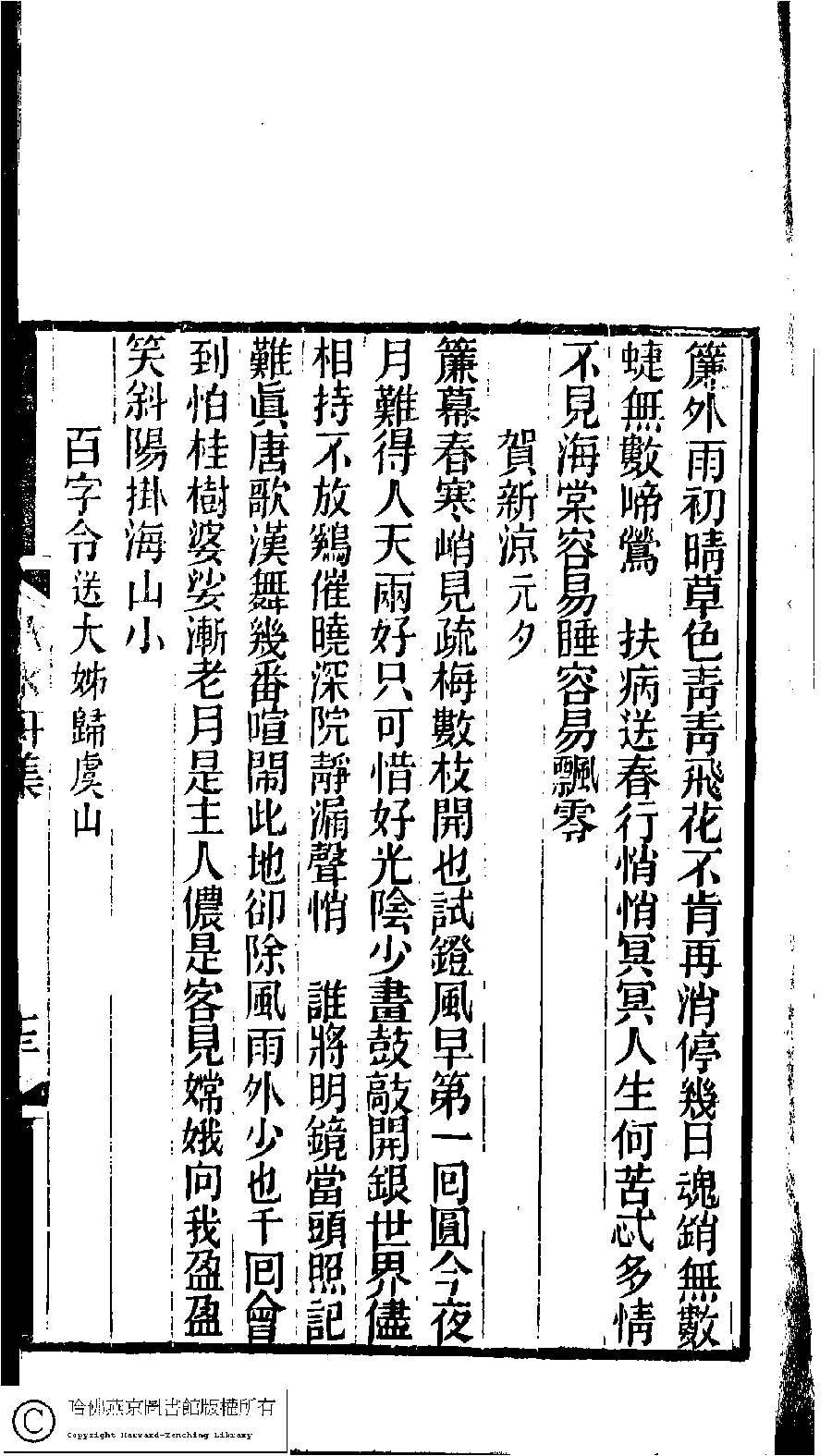 | (PRINT FRIENDLY VERSION) 林下雅音集﹕五種(淸冒俊輯) : 秋水軒詩詞集: 一卷。淸光緖十年(1884)刻本。 ![]() Page : 詞.13b | click for larger image | 林下雅音集﹕五種(淸冒俊輯) : 秋水軒詩詞集: 一卷。淸光緖十年(1884)刻本。![]() Page : 詞.13a | click for larger image | Back |