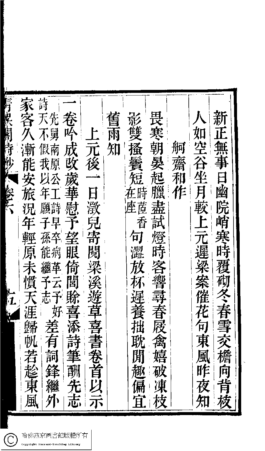 | (PRINT FRIENDLY VERSION) 京江鮑氏三女史詩鈔合刻(清戴燮元輯) : 清娛閣詩鈔。清光緖八年(1882) 刻本。 ![]() Page : 6.5b | click for larger image | 京江鮑氏三女史詩鈔合刻(清戴燮元輯) : 清娛閣詩鈔。清光緖八年(1882) 刻本。![]() Page : 6.5a | click for larger image | Back |