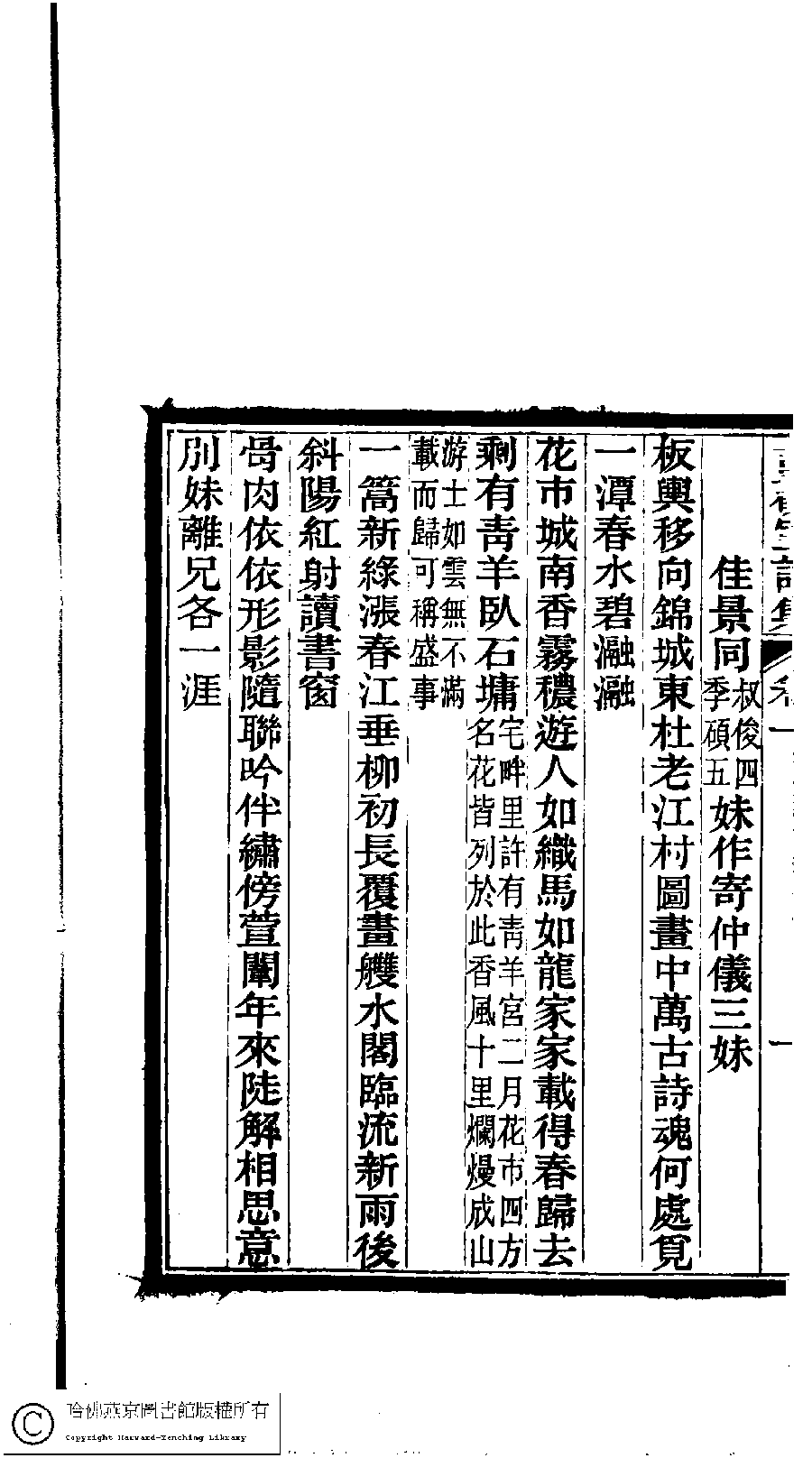 Poem [Huan hua cao tang xin ying zhu zai san rao xi hui za hua cui zhu hao niao ying ming shi lai cong cong chong gui jing yi ou ni san shi yun yi xie si shi jia jing tong Shujun si mei Jishuo wu mei zuo ji Zhongyi san mei]