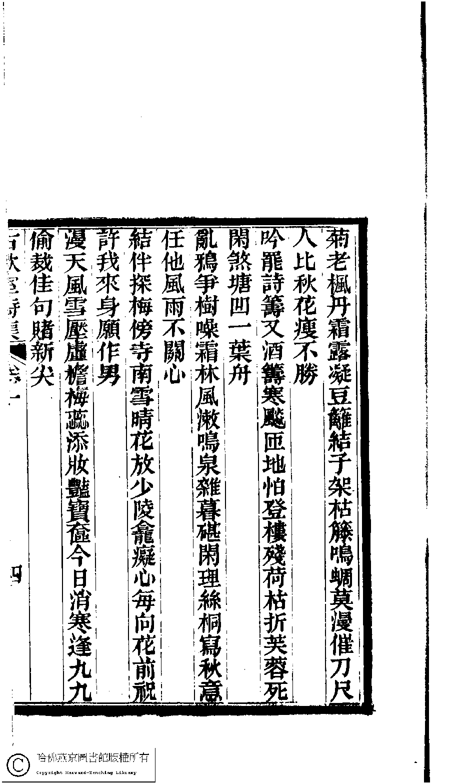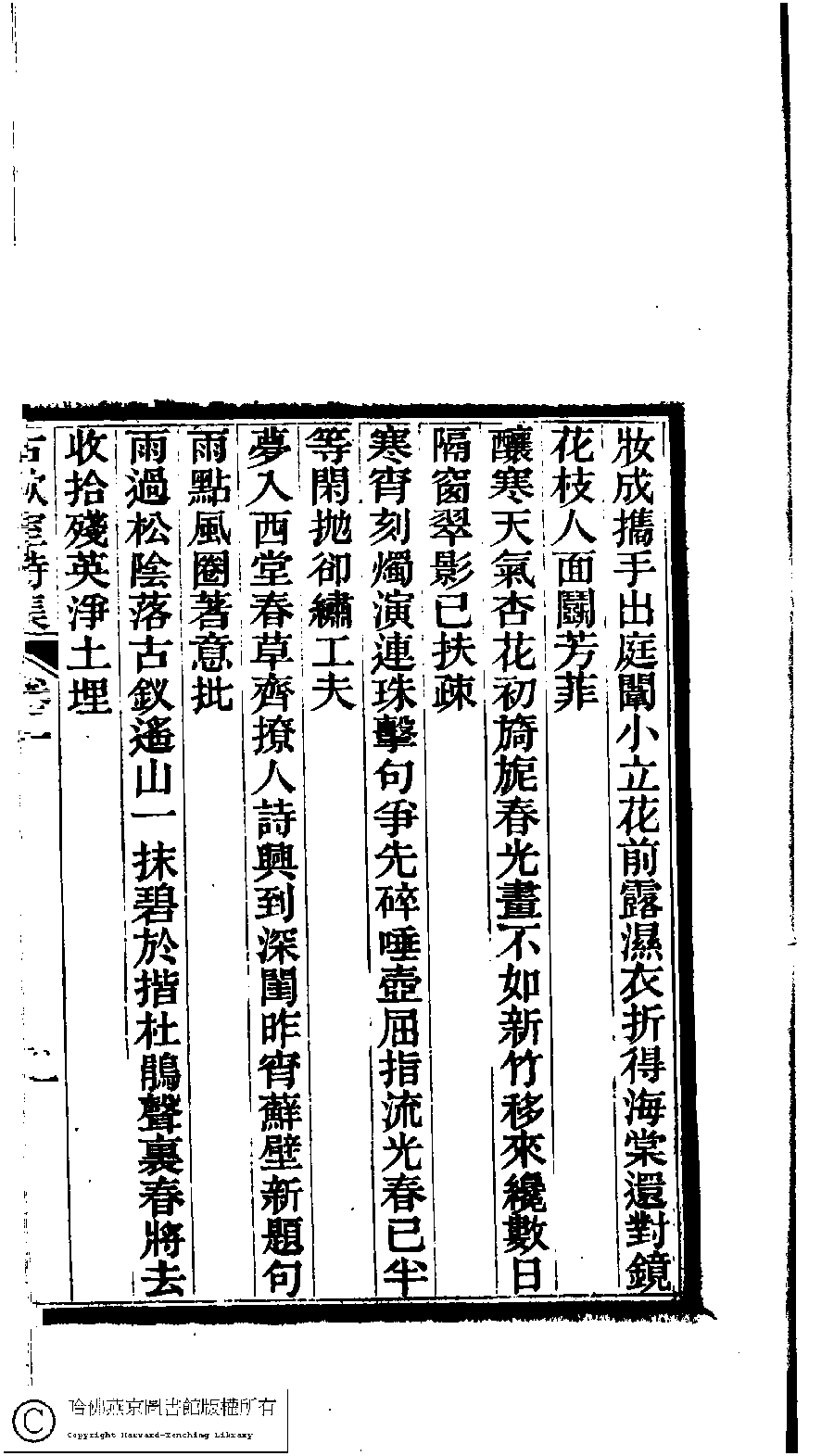 | (PRINT FRIENDLY VERSION) 古歡室集:詩三卷,詞一卷,醫學篇二卷,女學篇一卷,中饋錄一卷(清曽懿撰) ![]() Page : 1.2b | click for larger image | 古歡室集:詩三卷,詞一卷,醫學篇二卷,女學篇一卷,中饋錄一卷(清曽懿撰)![]() Page : 1.2a | click for larger image | 古歡室集:詩三卷,詞一卷,醫學篇二卷,女學篇一卷,中饋錄一卷(清曽懿撰)![]() Page : 1.1b | click for larger image | 古歡室集:詩三卷,詞一卷,醫學篇二卷,女學篇一卷,中饋錄一卷(清曽懿撰)![]() Page : 1.1a | click for larger image |