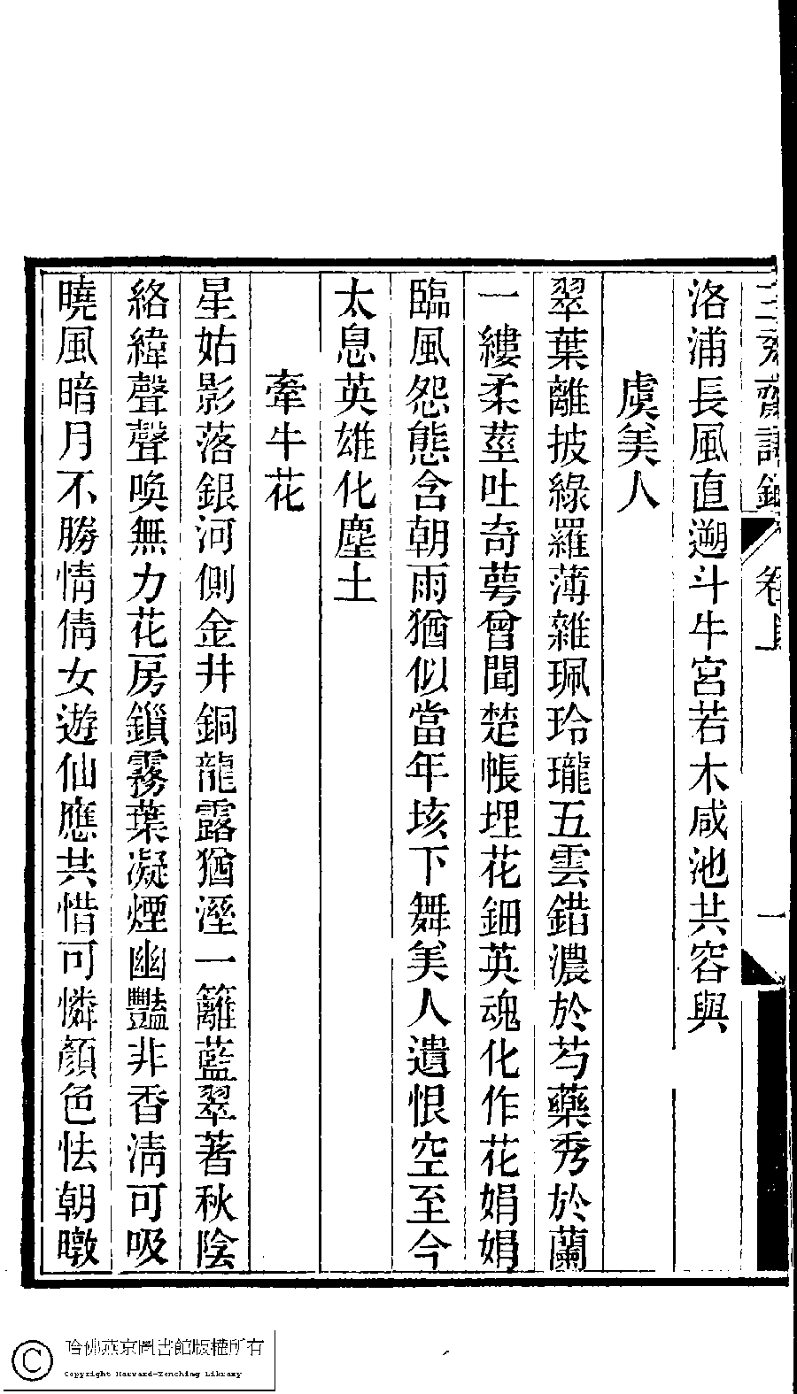 | (PRINT FRIENDLY VERSION) 京江鮑氏三女史詩鈔合刻(清戴燮元輯) : 三秀齋詩鈔。清光緖八年(1882) 刻本。 ![]() Page : 1.2a | click for larger image | 京江鮑氏三女史詩鈔合刻(清戴燮元輯) : 三秀齋詩鈔。清光緖八年(1882) 刻本。![]() Page : 1.1b | click for larger image | Back |